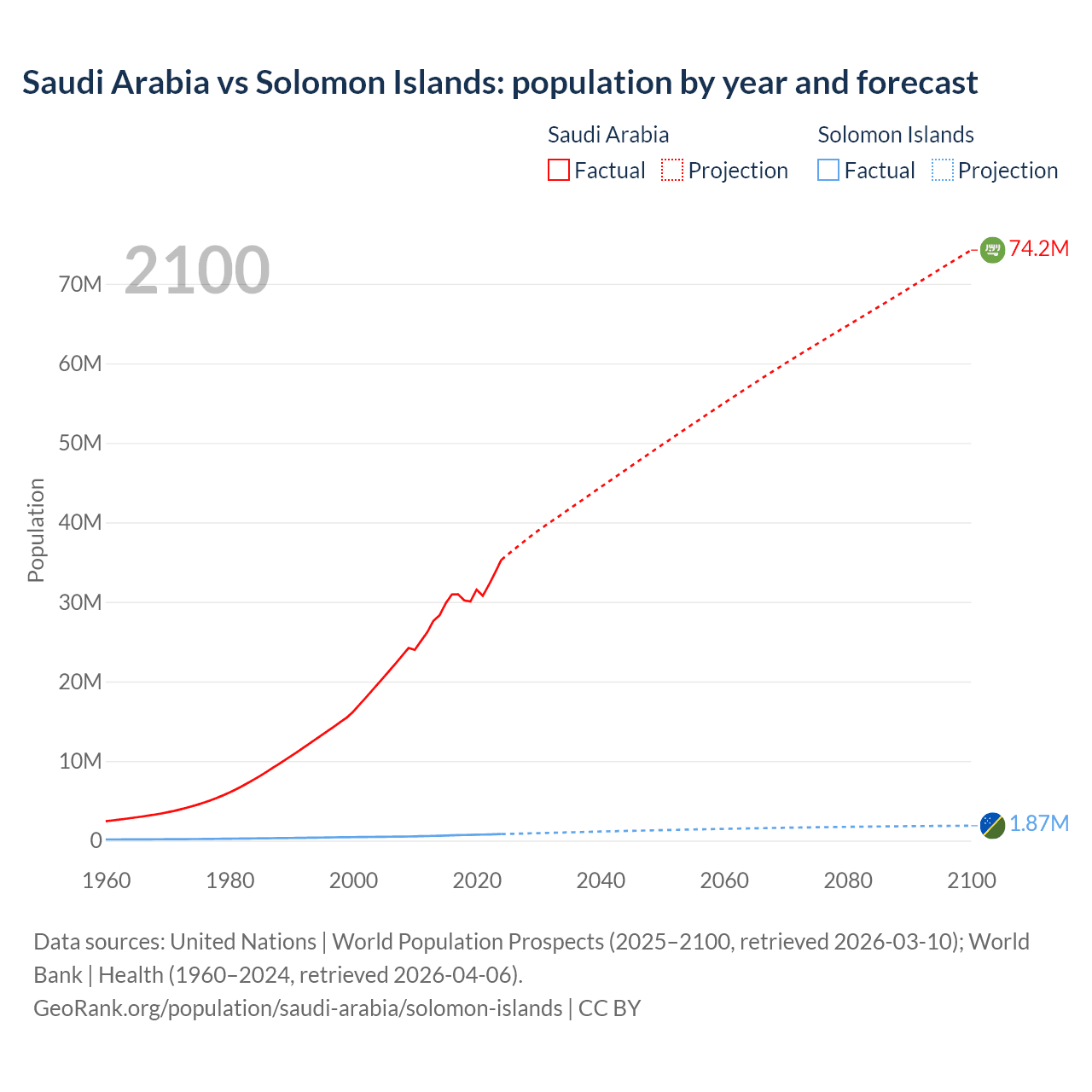 Saudi Arabia vs Solomon Islands: population by year and forecast