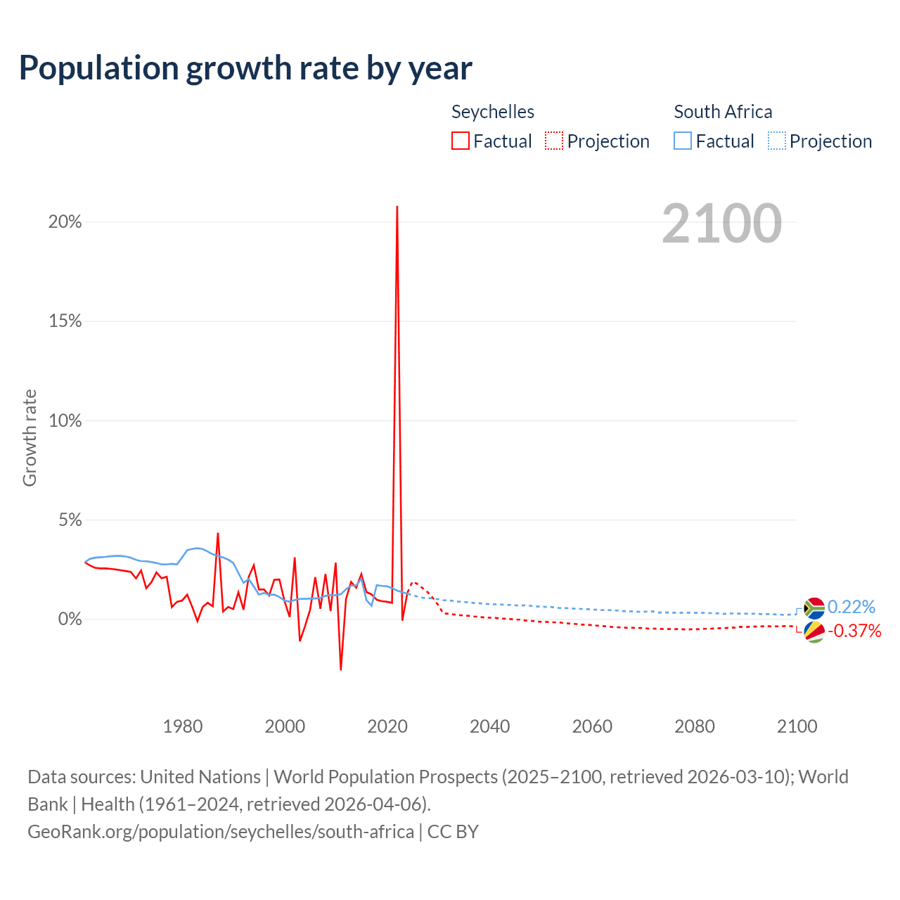 Seychelles vs South Africa: population by year and forecast