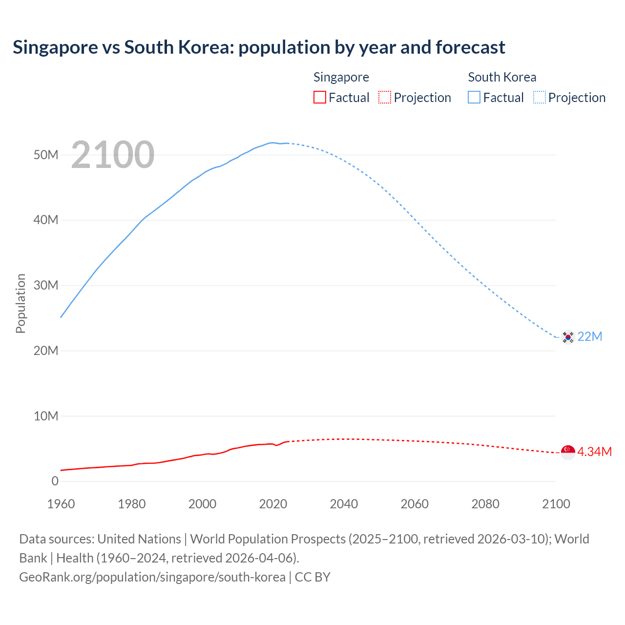Population differences between Singapore and South Korea