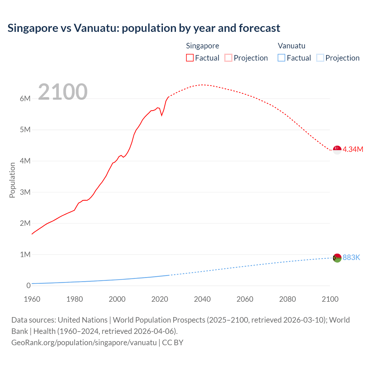 Singapore vs Vanuatu: population by year and forecast