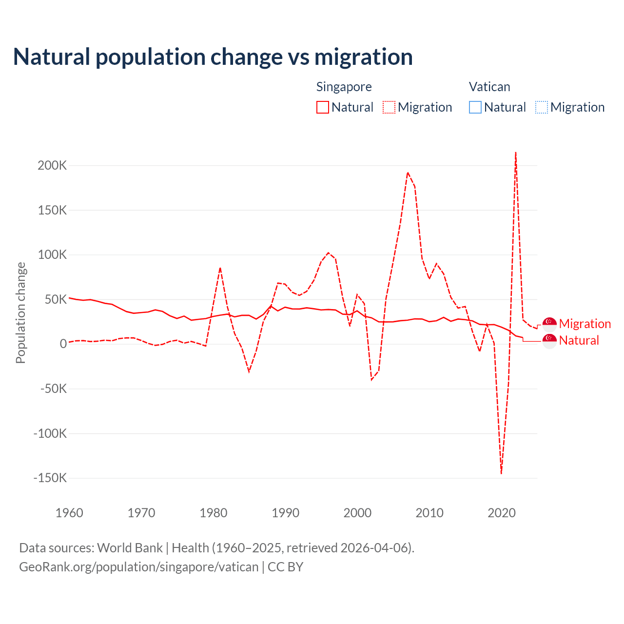 - For the last 10 years, Singapore has had an average growth rate of +1.04% per year vs +1.9% in the Vatican.