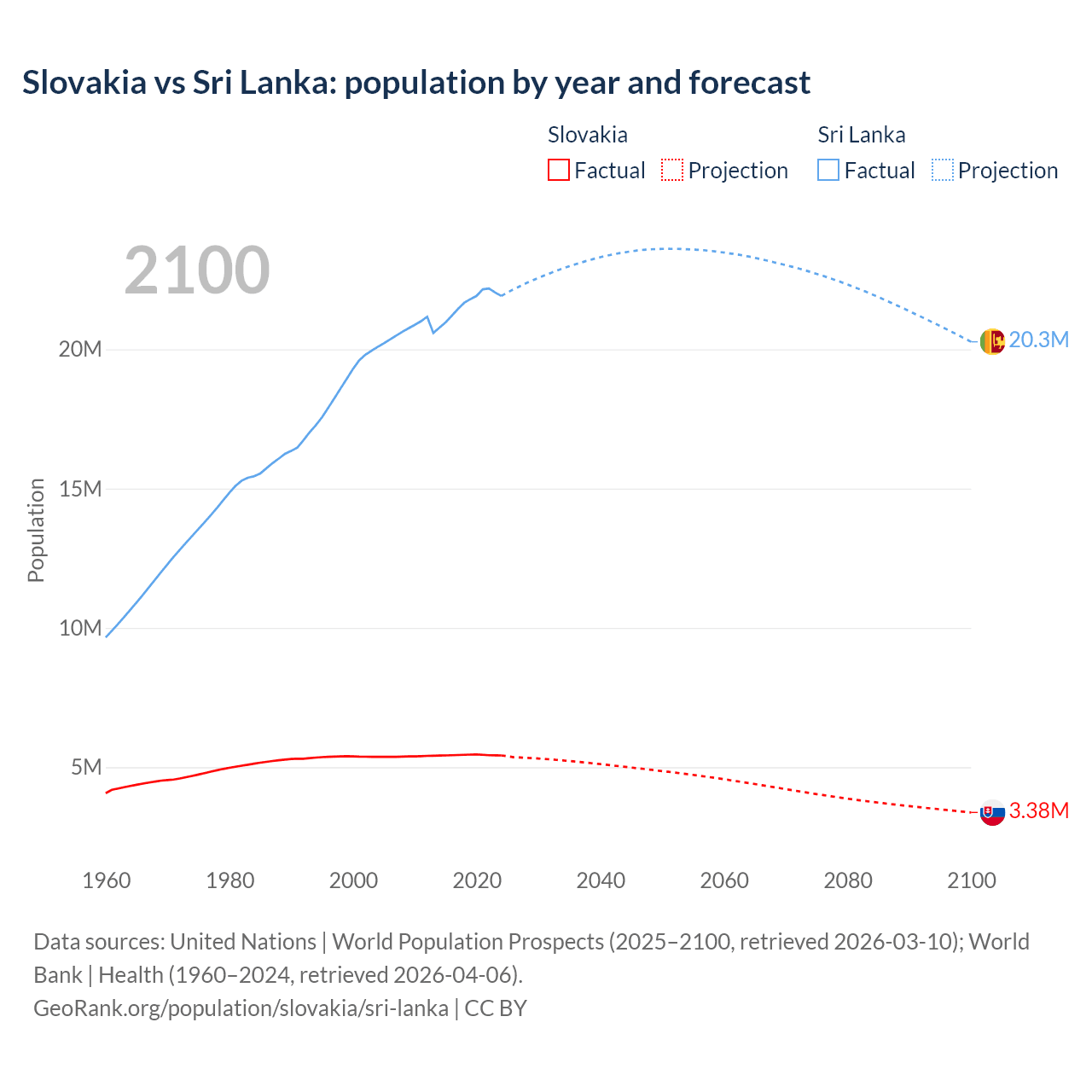 Slovakia vs Sri Lanka: population by year and forecast