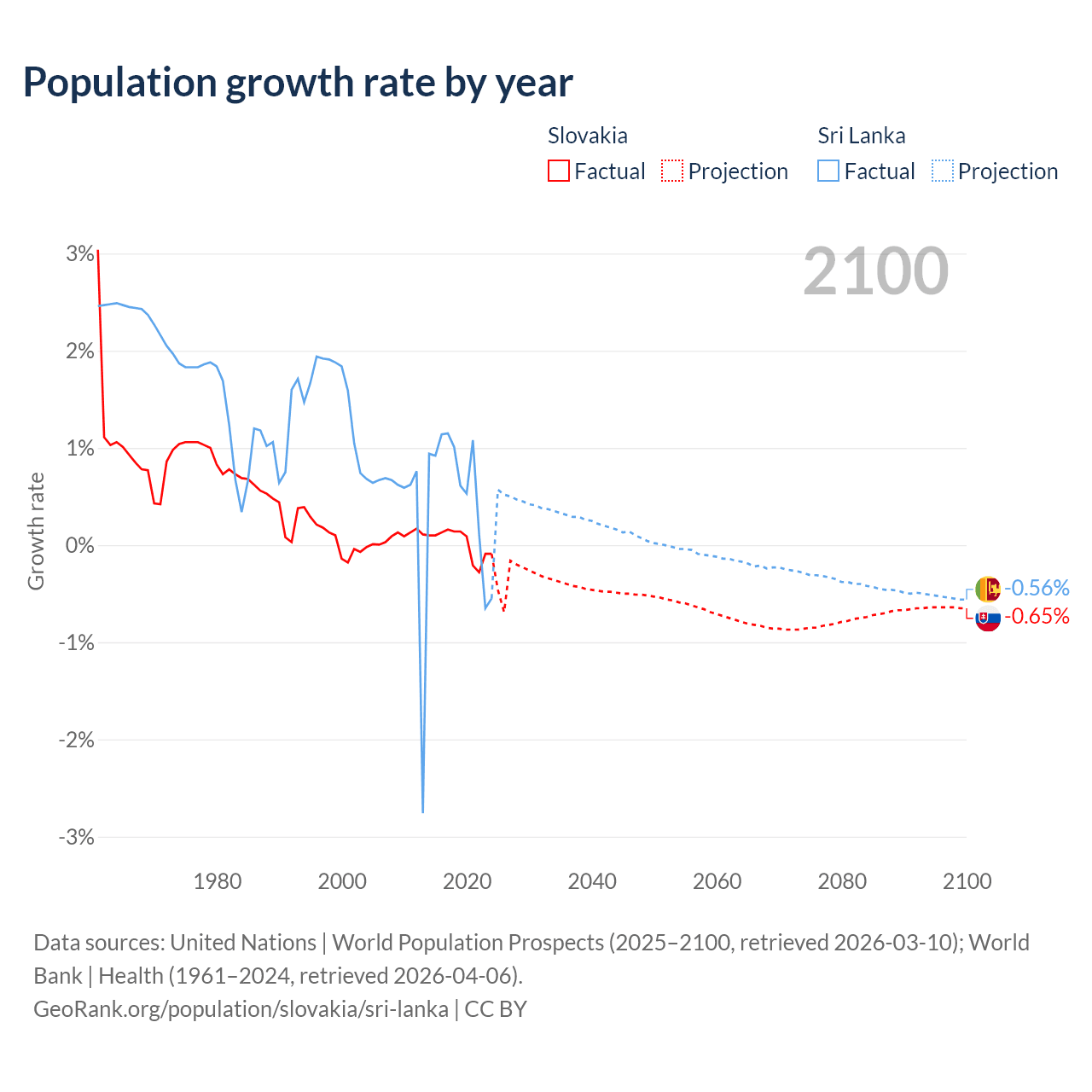 - For the last 10 years, Slovakia has had an average growth rate of +0.01% per year vs +0.57% in Sri Lanka.