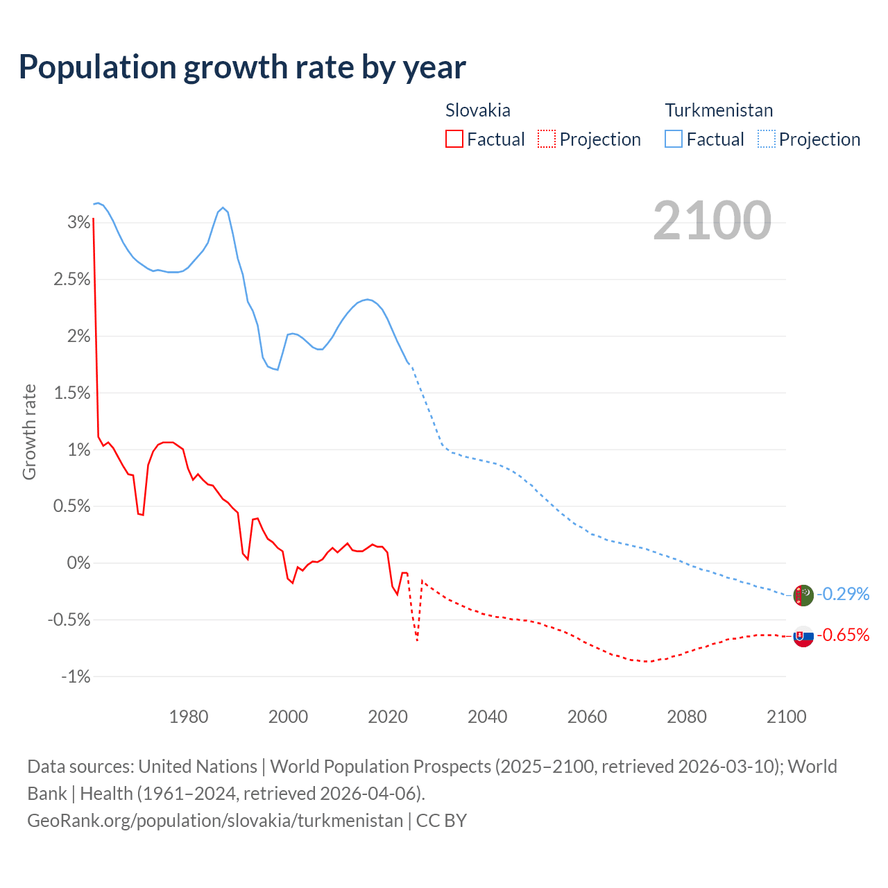 - For the last 10 years, Slovakia has had an average growth rate of +0.01% per year vs +2.14% in Turkmenistan.