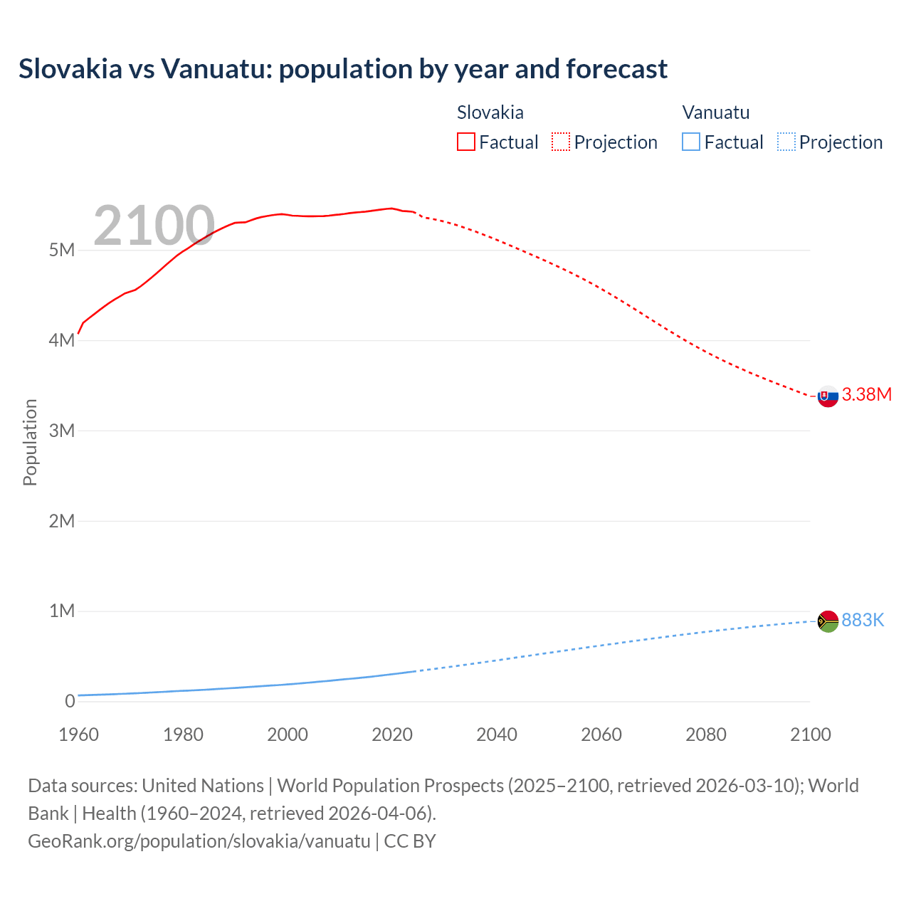 Slovakia vs Vanuatu: population by year and forecast