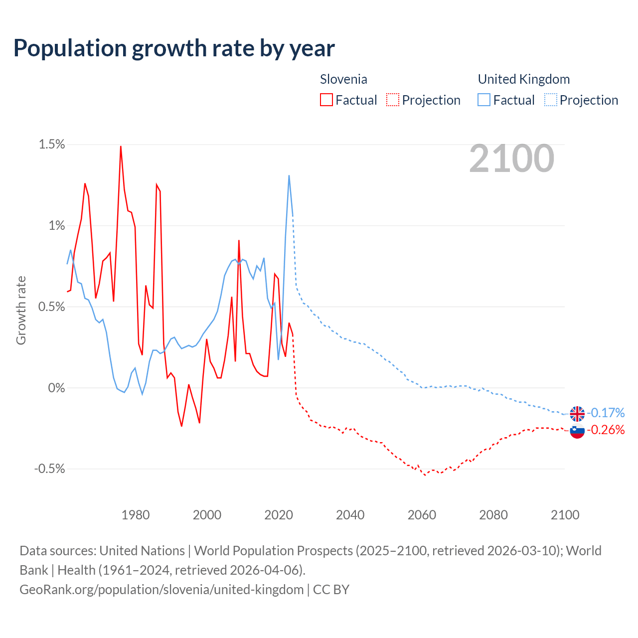 - For the last 10 years, Slovenia has had an average growth rate of +0.29% per year vs +0.7% in the United Kingdom.