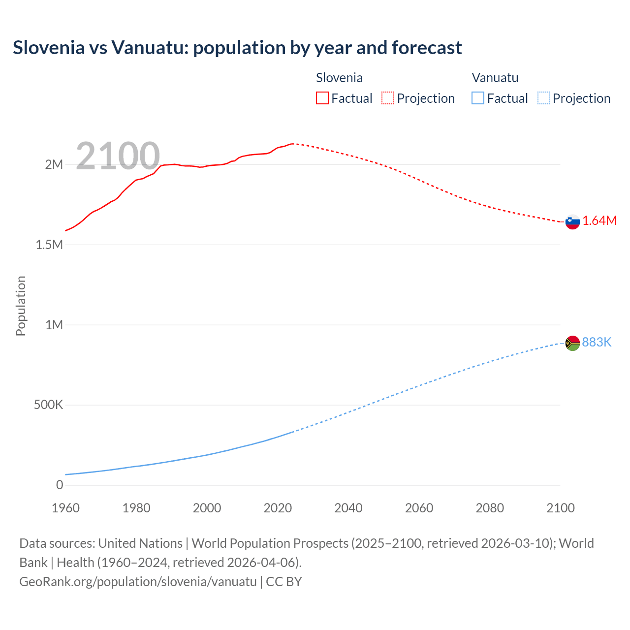 Slovenia vs Vanuatu: population by year and forecast