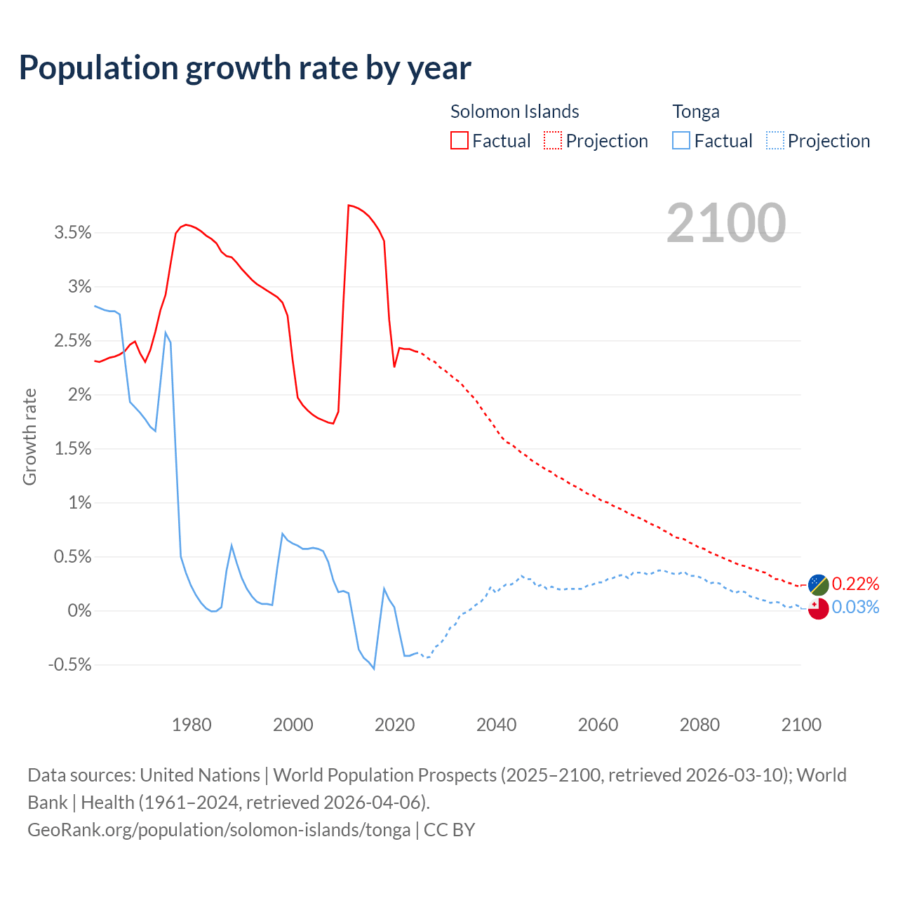 Solomon Islands vs Tonga: population by year and forecast