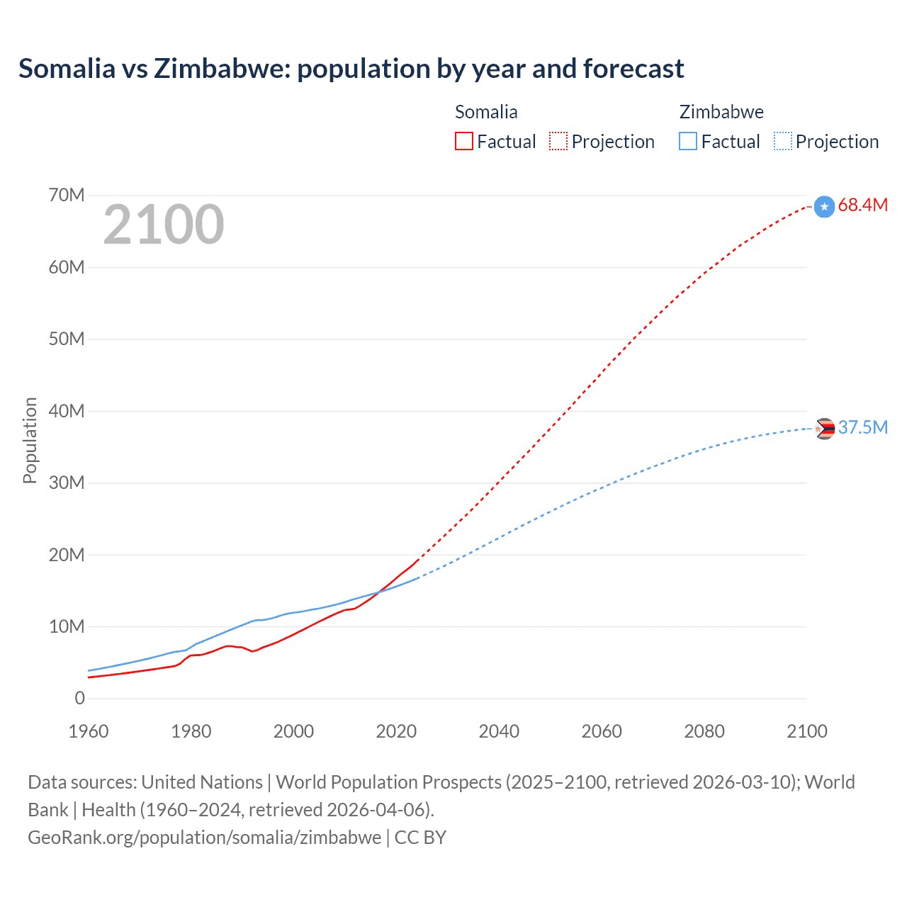 Somalia vs Zimbabwe: population by year and forecast