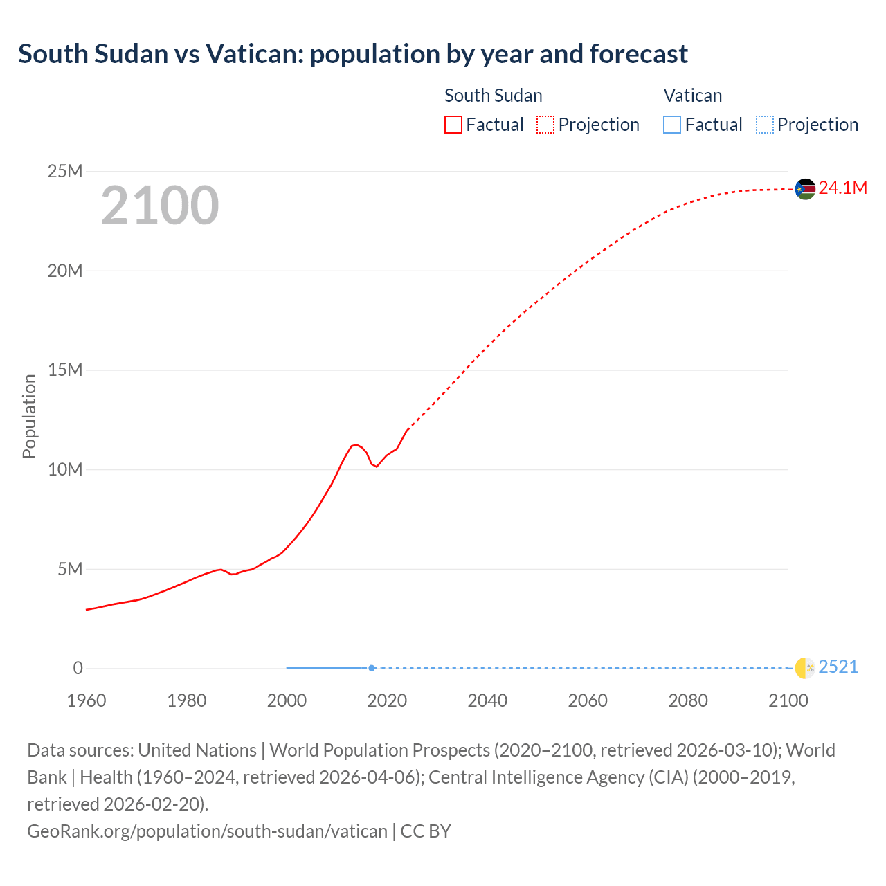 Population differences between South Sudan and the Vatican