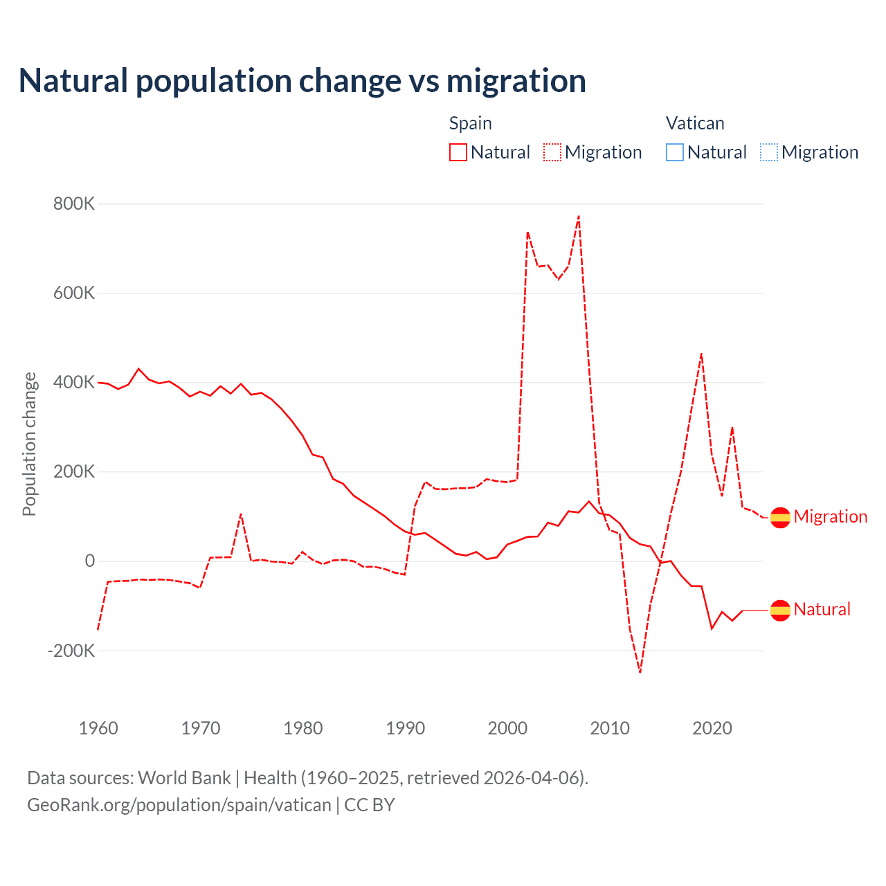 - For the last 10 years, Spain has had an average growth rate of +0.43% per year vs +1.9% in the Vatican.