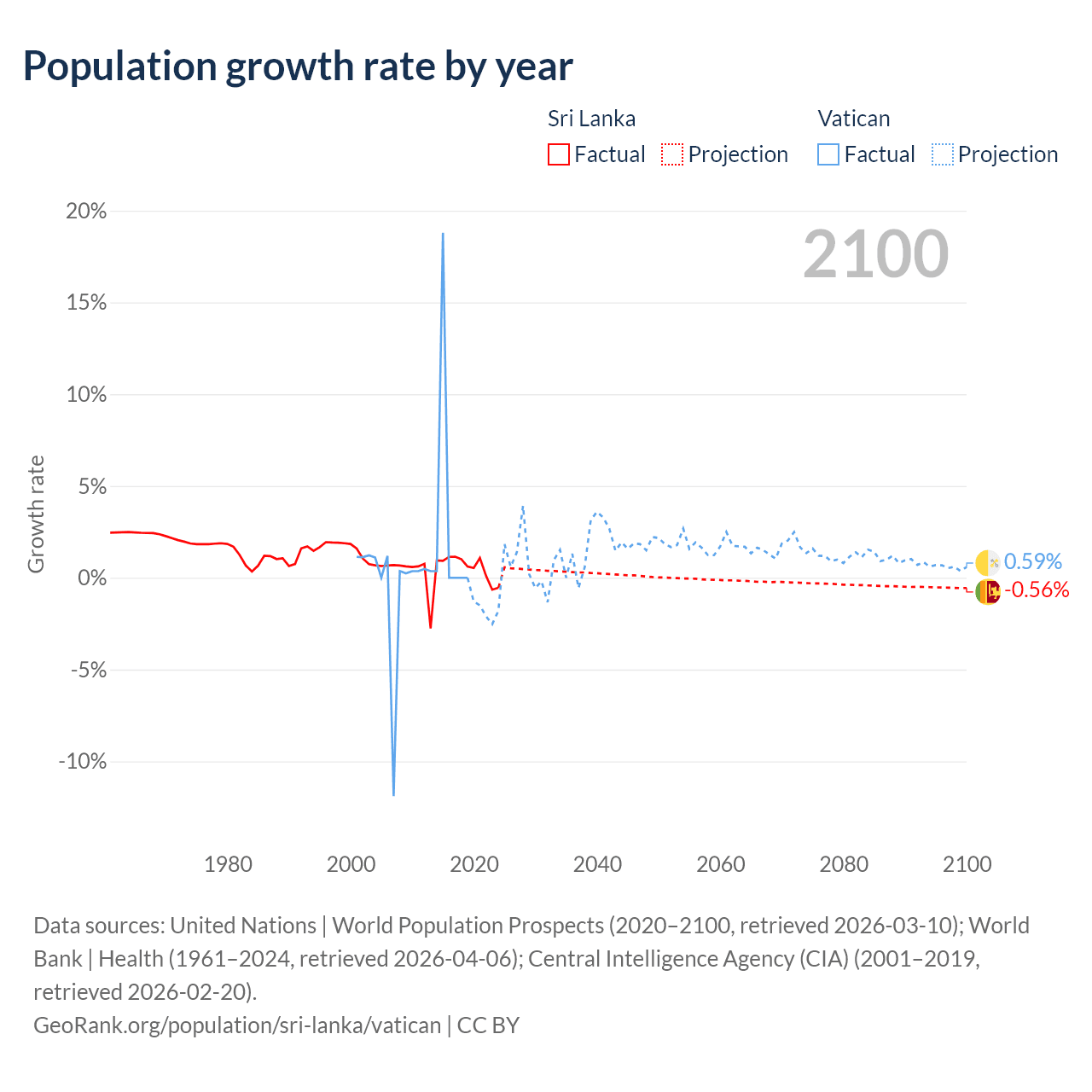 - For the last 10 years, Sri Lanka has had an average growth rate of +0.57% per year vs +1.9% in the Vatican.