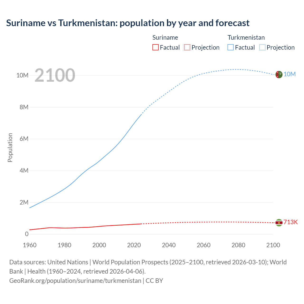 Suriname vs Turkmenistan: population by year and forecast