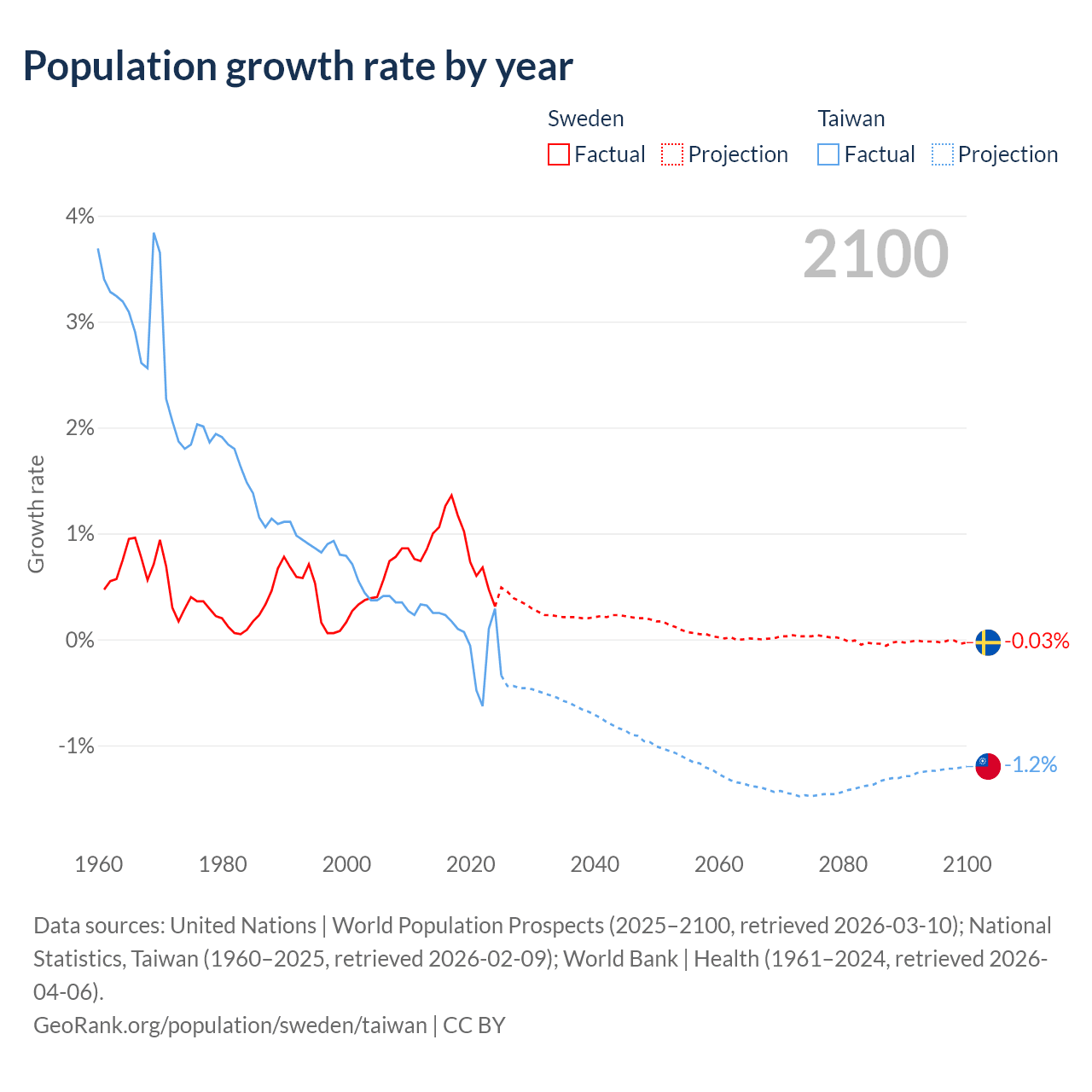 Data sources: World Bank | Health (1960–2024, retrieved 2026-04-06); United Nations | World Population Prospects (1960–2026, retrieved 2026-03-10); U.S. Census Bureau (1960–2025, retrieved 2026-02-08); National Statistics, Taiwan (1960–2025, retrieved 2026-02-09); Central Intelligence Agency (CIA) (2000–2019, retrieved 2026-02-20).
