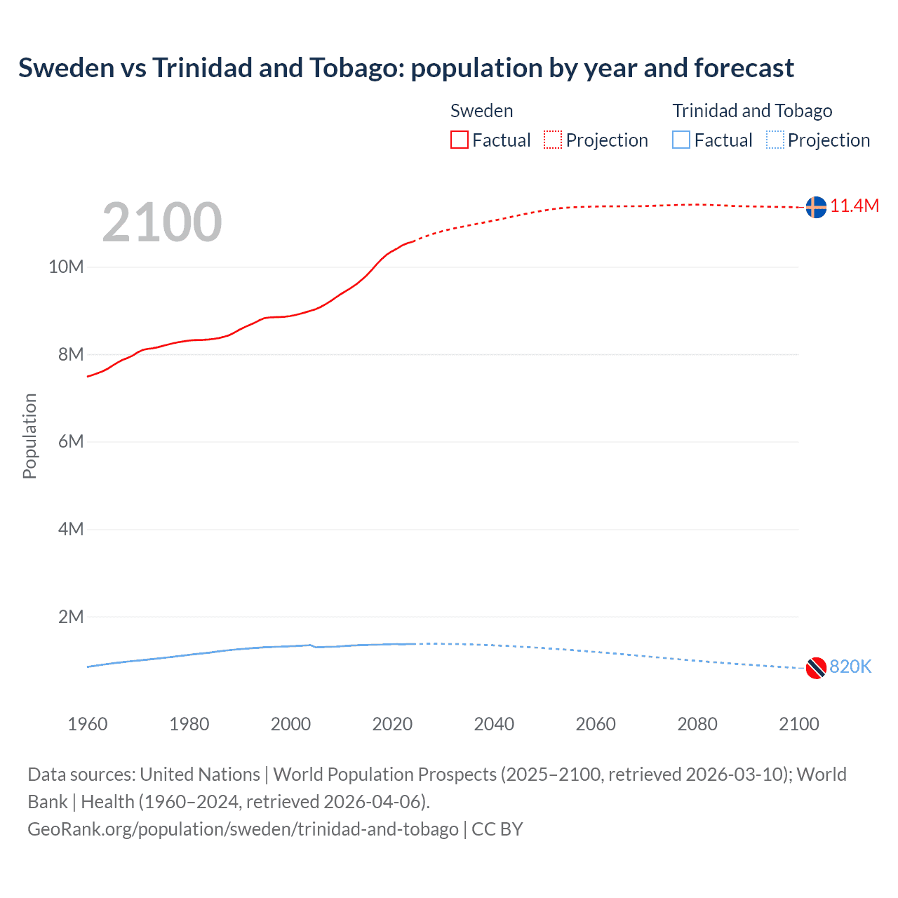 Sweden vs Trinidad and Tobago: population by year and forecast