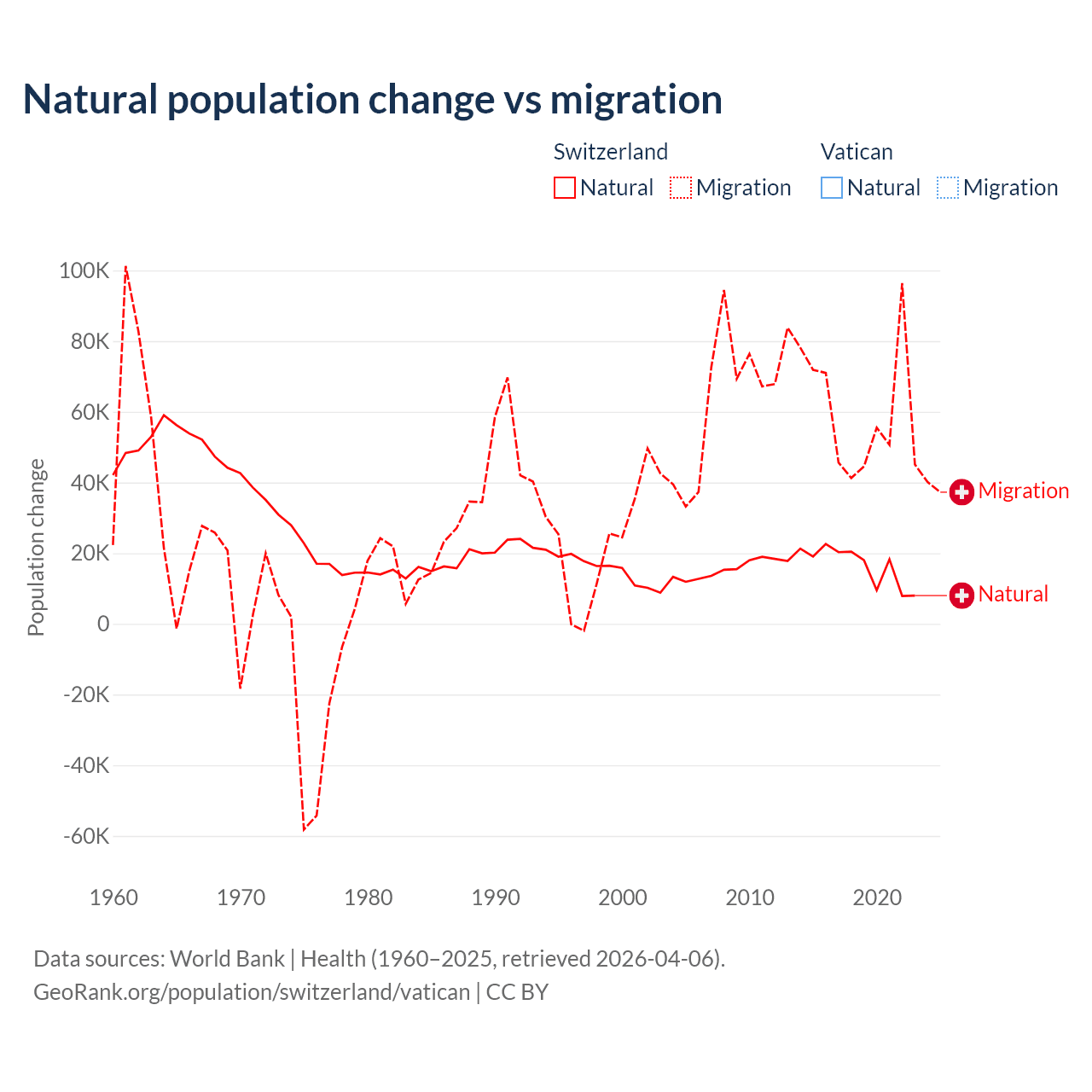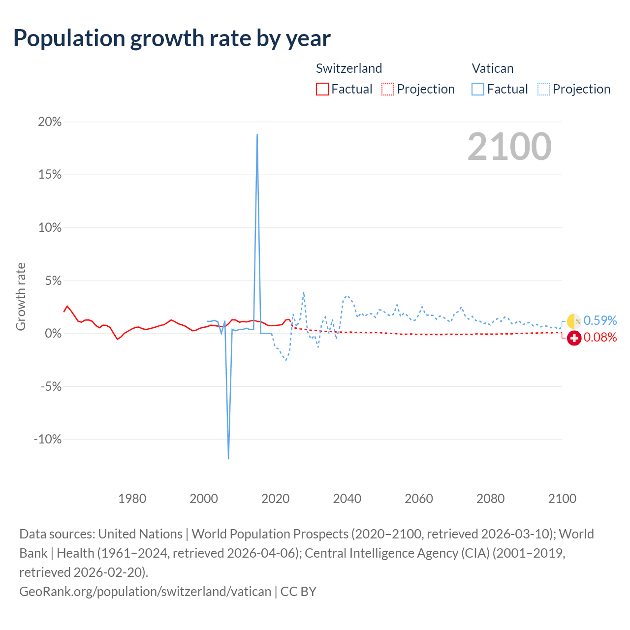 - For the last 10 years, Switzerland has had an average growth rate of +0.98% per year vs +1.9% in the Vatican.