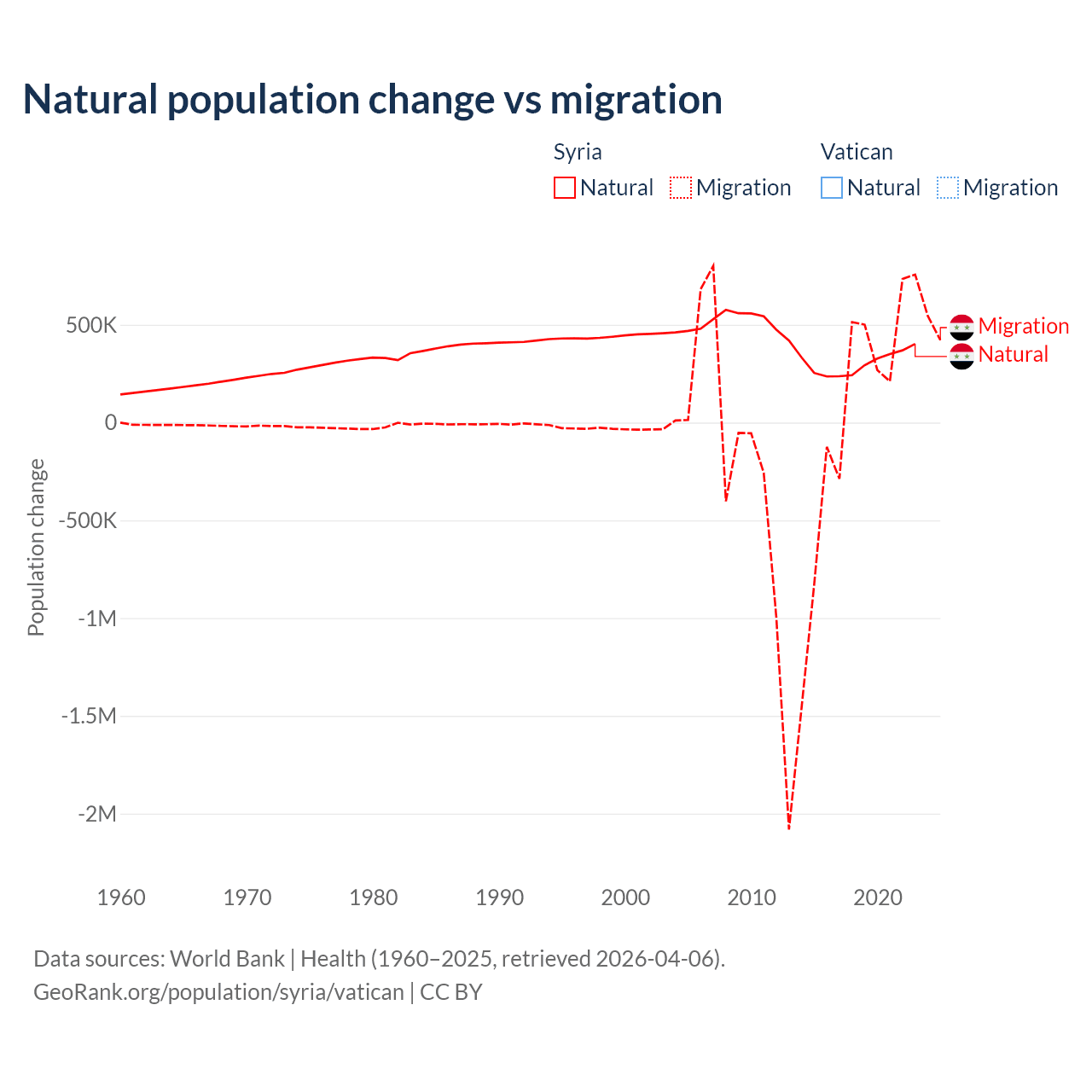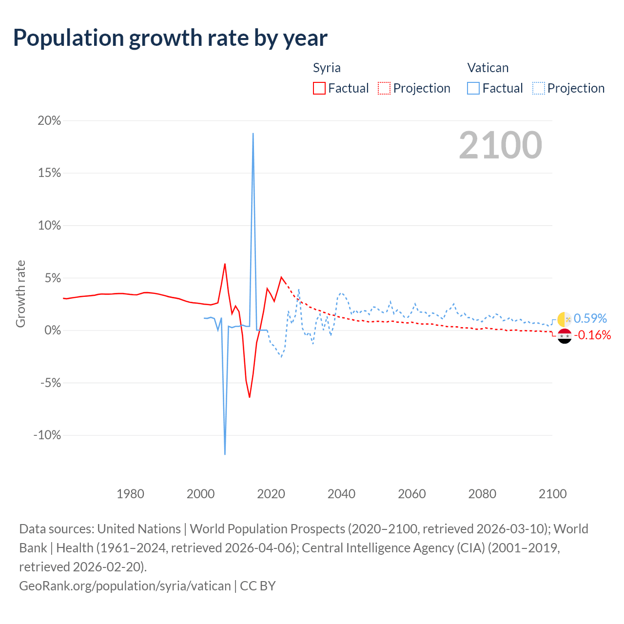 - For the last 10 years, Syria has had an average growth rate of +1.25% per year vs +1.9% in the Vatican.