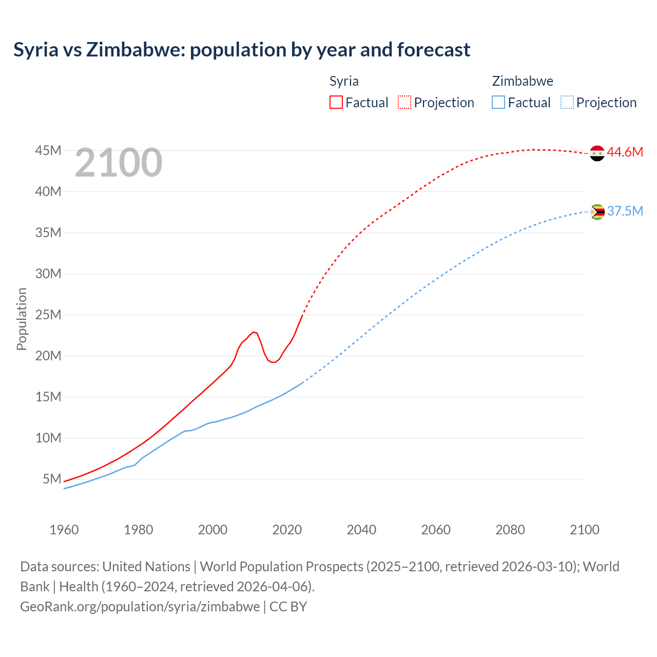 Syria vs Zimbabwe: population by year and forecast