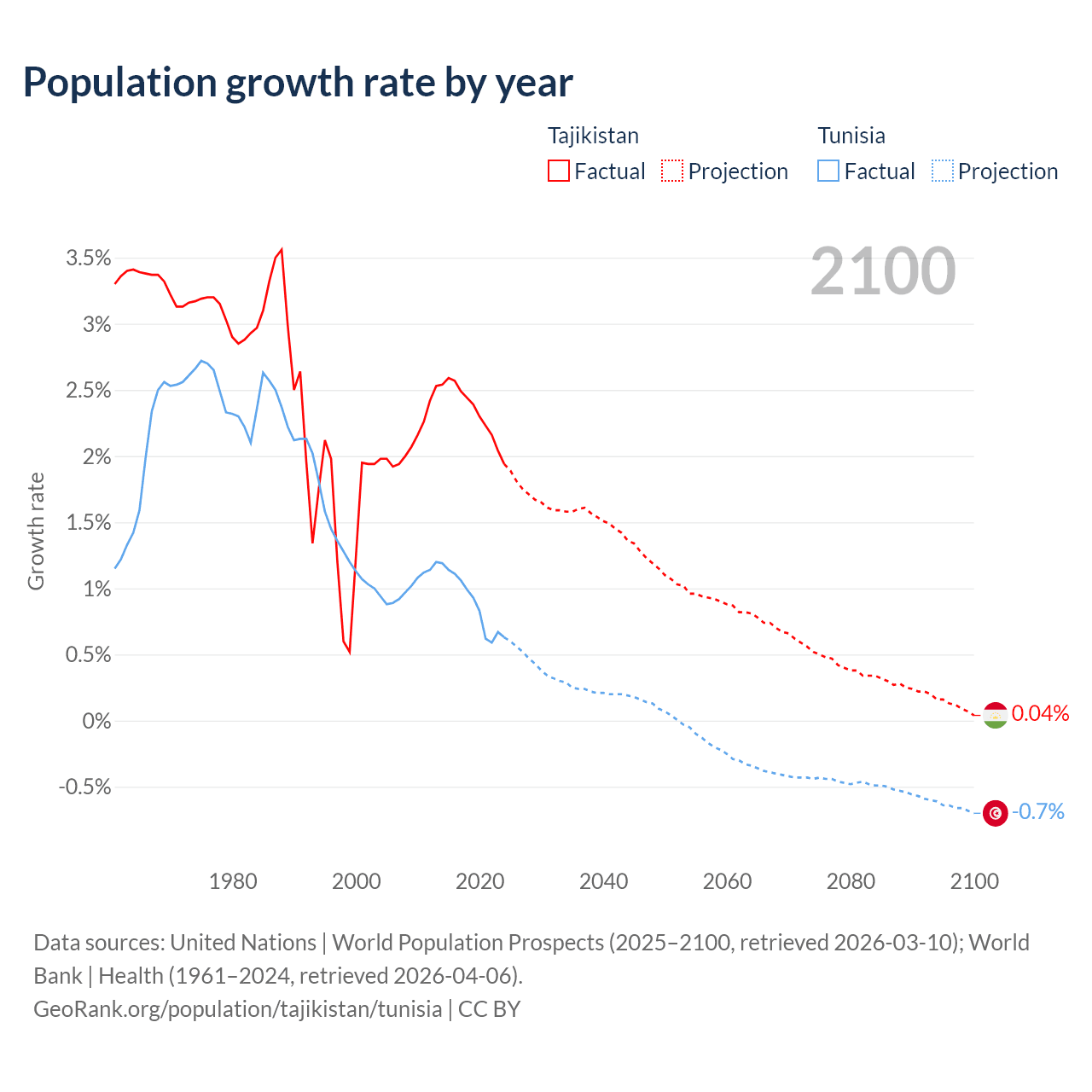 Tajikistan vs Tunisia: population by year and forecast