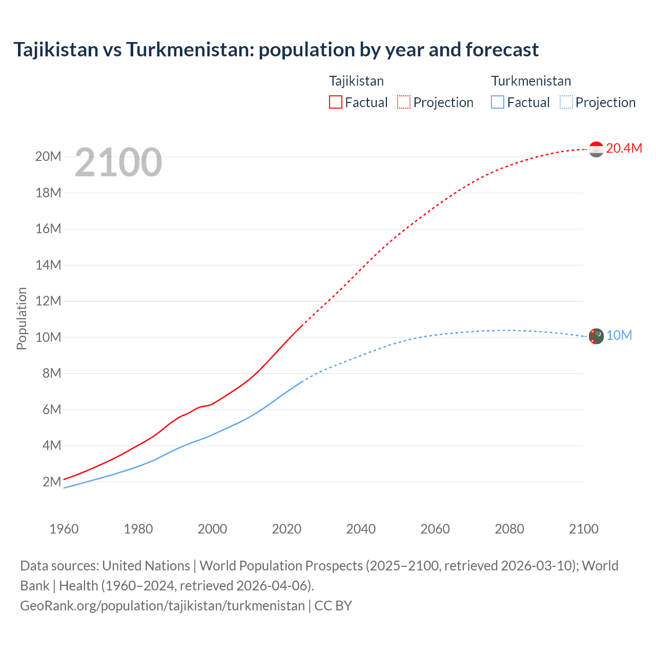 Tajikistan vs Turkmenistan: population by year and forecast