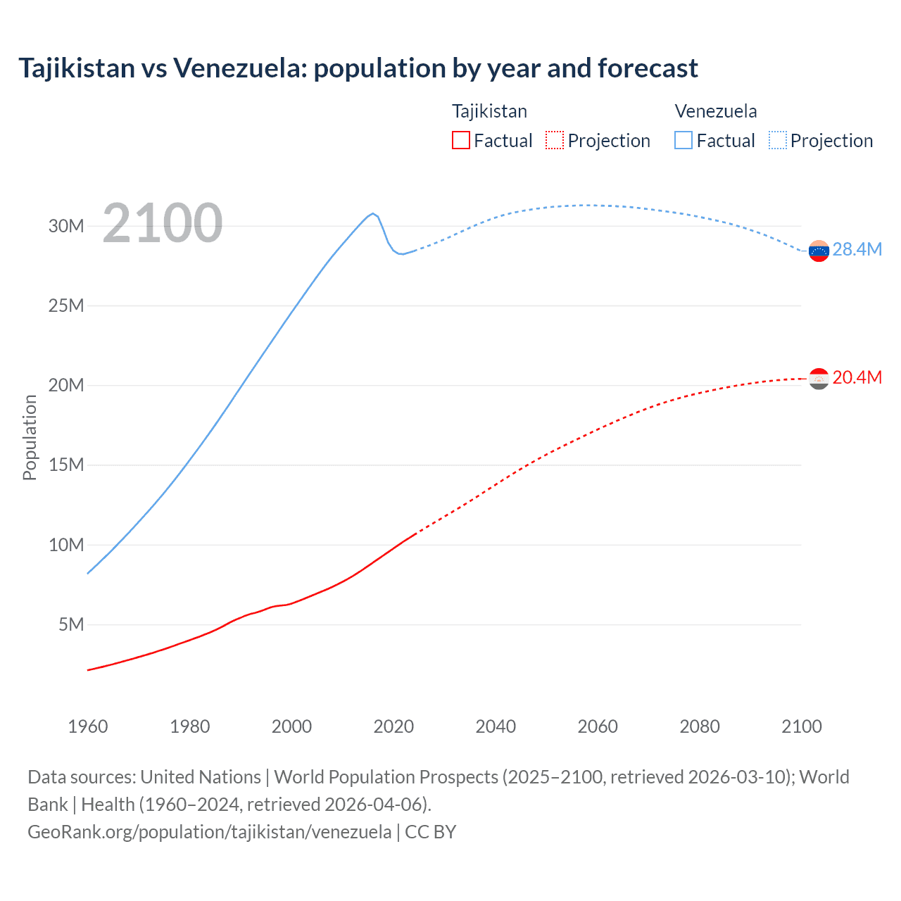 Tajikistan vs Venezuela: population by year and forecast