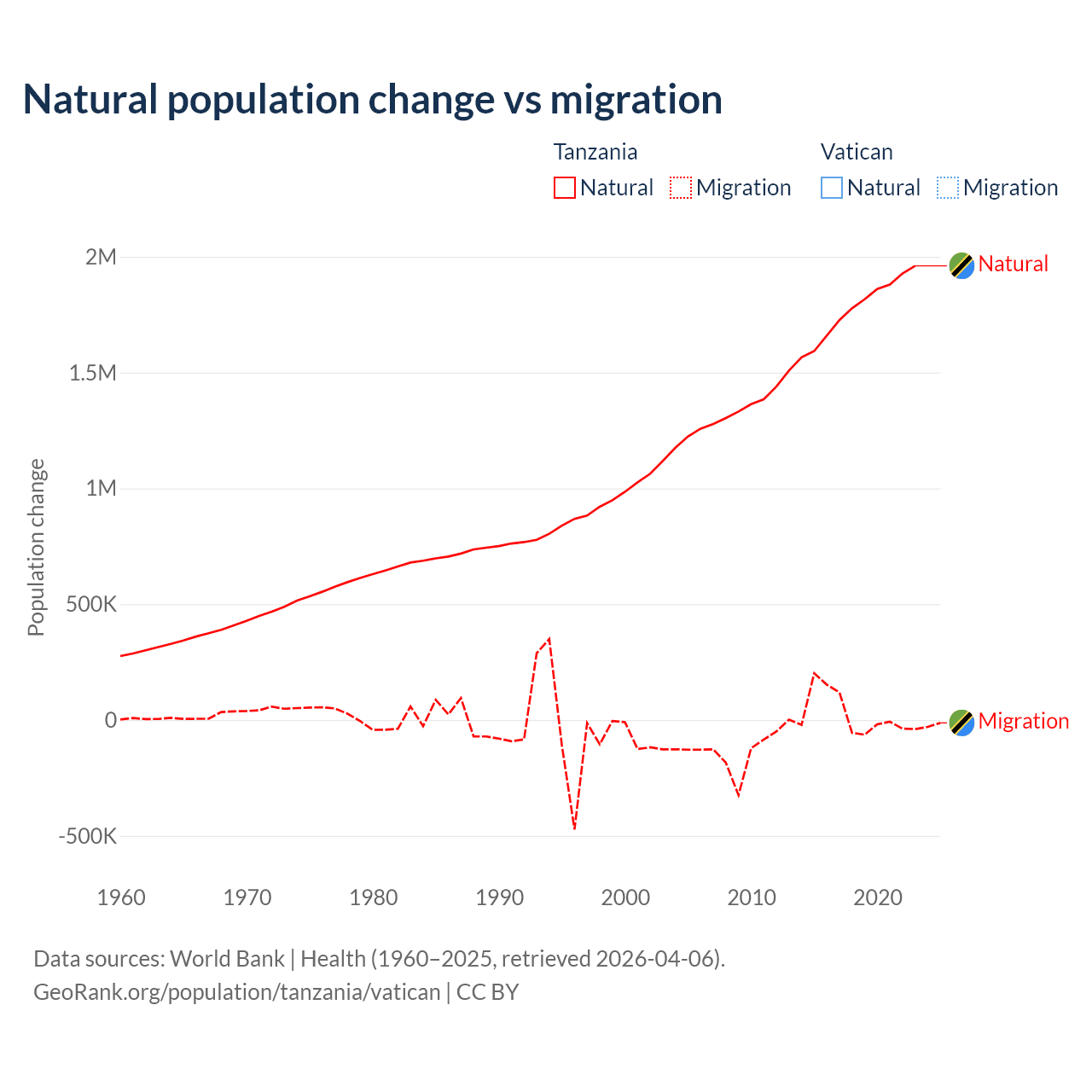 - For the last 10 years, Tanzania has had an average growth rate of +3.13% per year vs +1.9% in the Vatican.