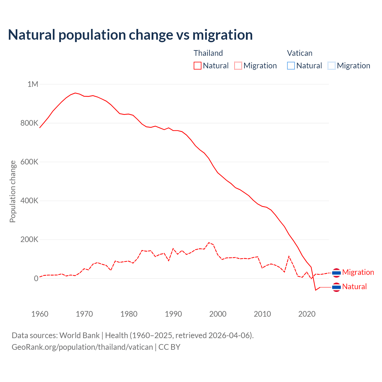 - For the last 10 years, Thailand has had an average growth rate of +0.23% per year vs +1.9% in the Vatican.