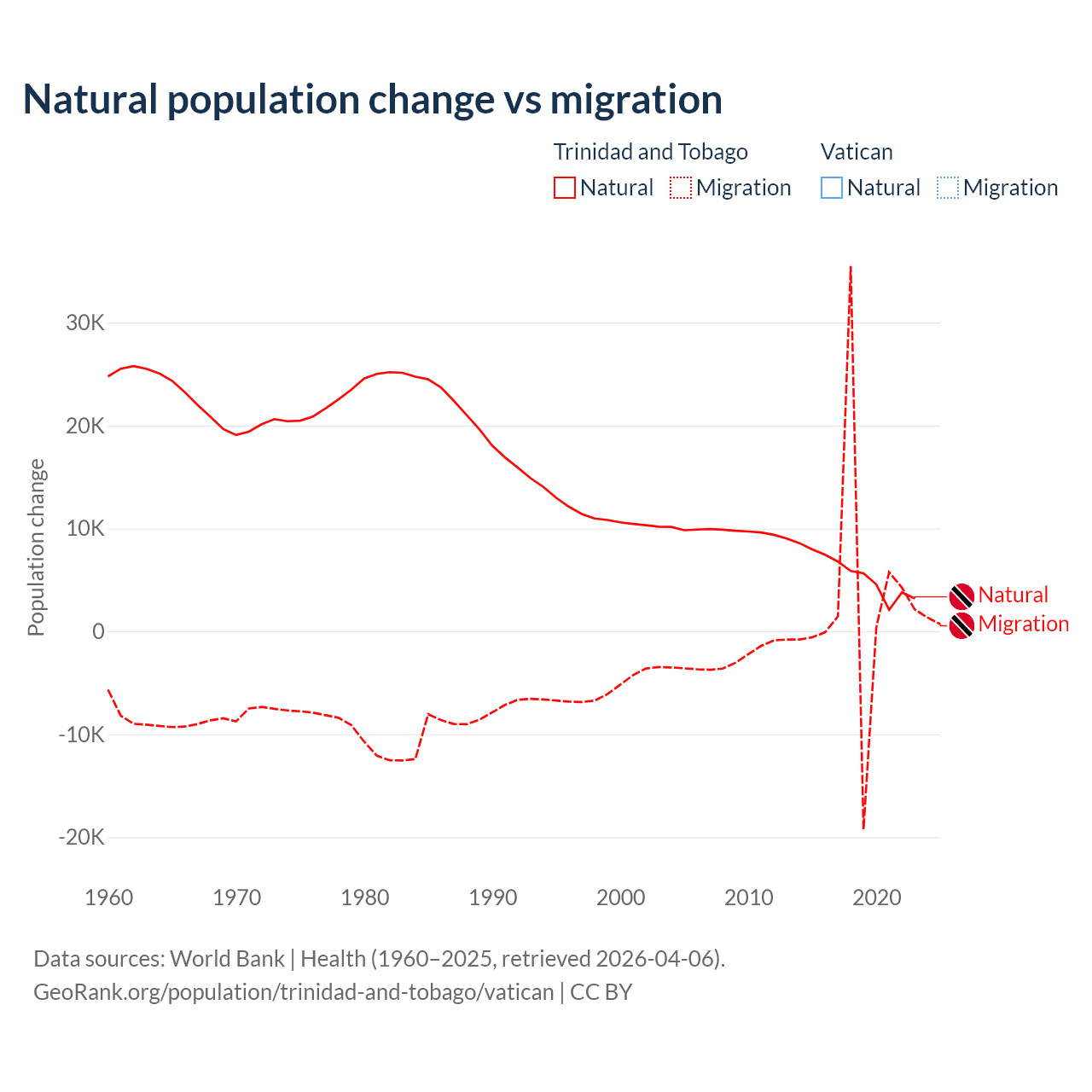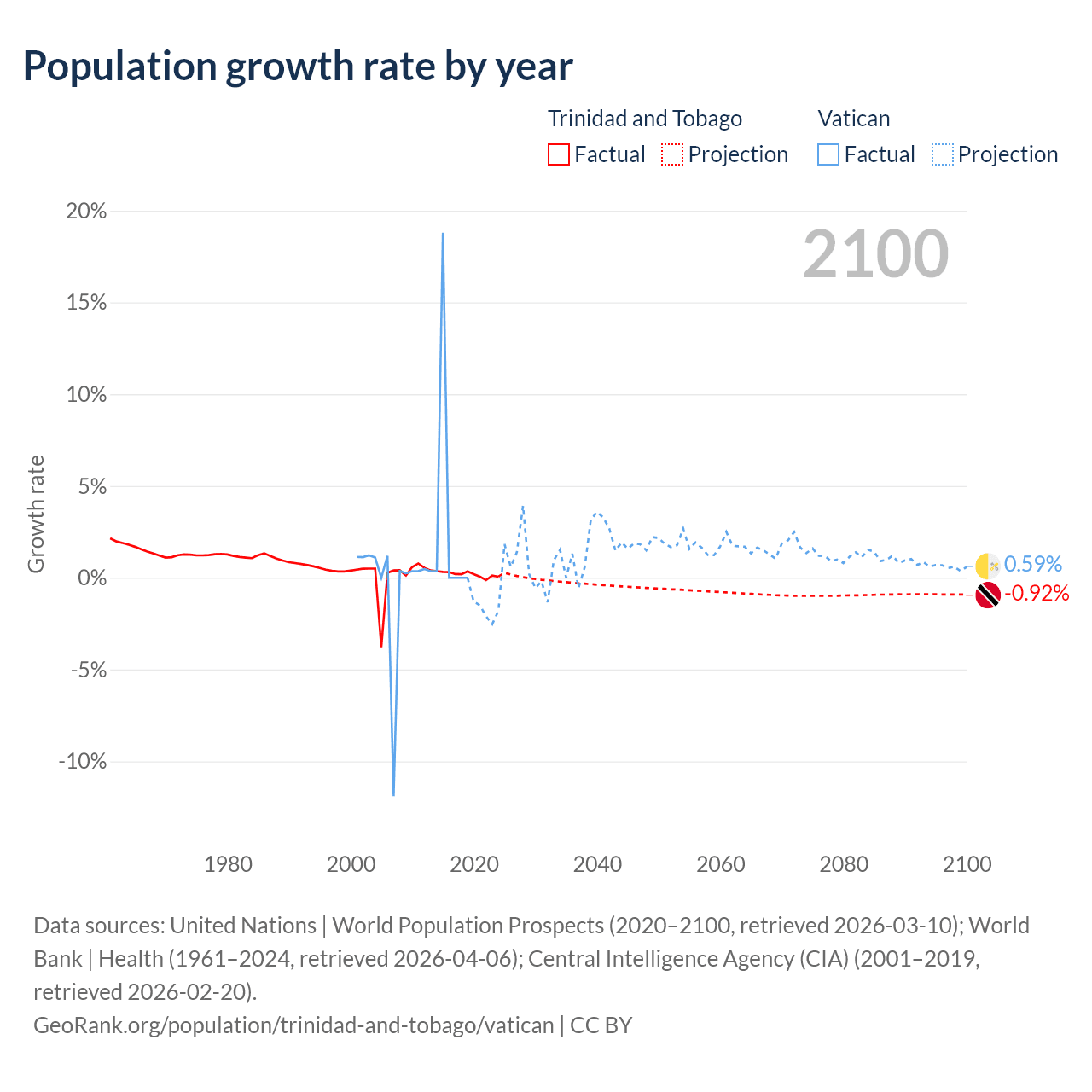 - For the last 10 years, Trinidad and Tobago has had an average growth rate of +0.19% per year vs +1.9% in the Vatican.