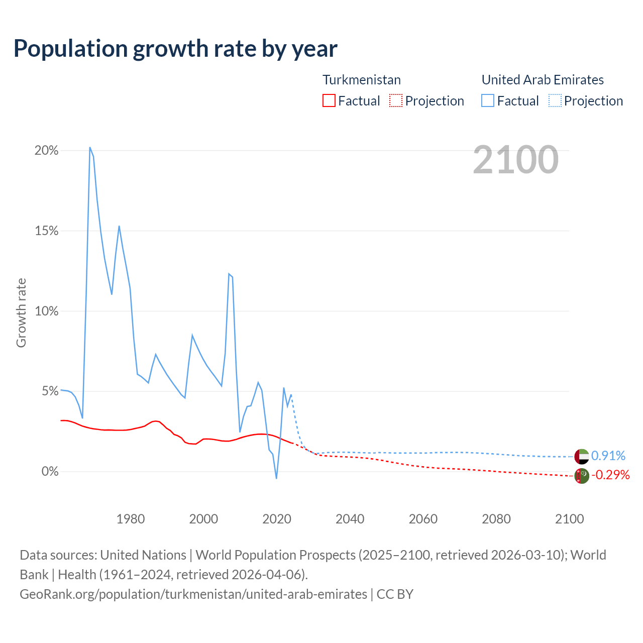 Data sources: World Bank | Health (1960–2024, retrieved 2026-04-06); United Nations | World Population Prospects (1960–2026, retrieved 2026-03-10); U.S. Census Bureau (1960–2025, retrieved 2026-02-08); Central Intelligence Agency (CIA) (2000–2019, retrieved 2026-02-20).