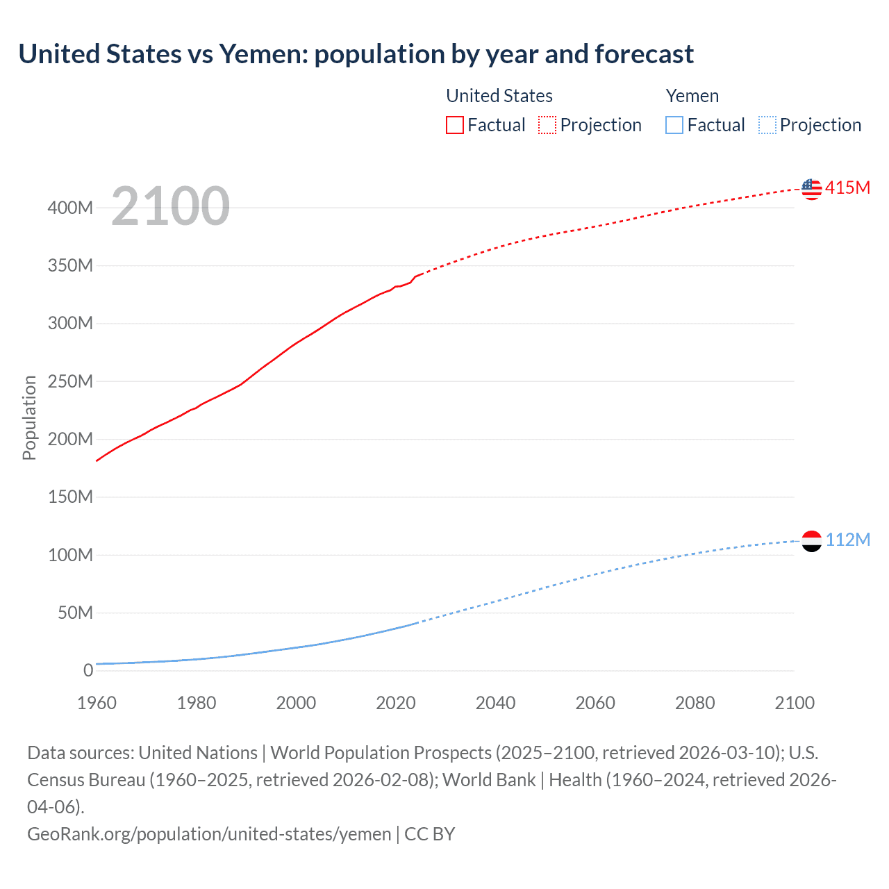 United States vs Yemen: population by year and forecast