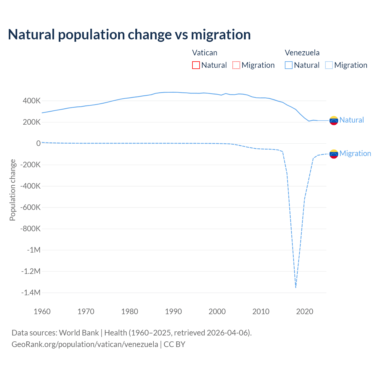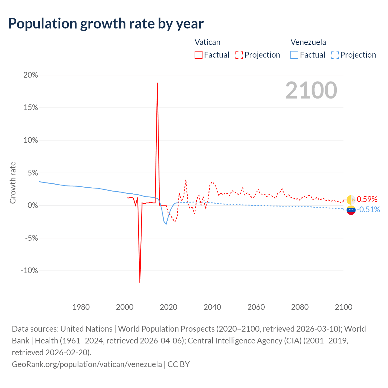 - For the last 10 years, the Vatican has had an average growth rate of +1.9% per year vs -0.46% in Venezuela.