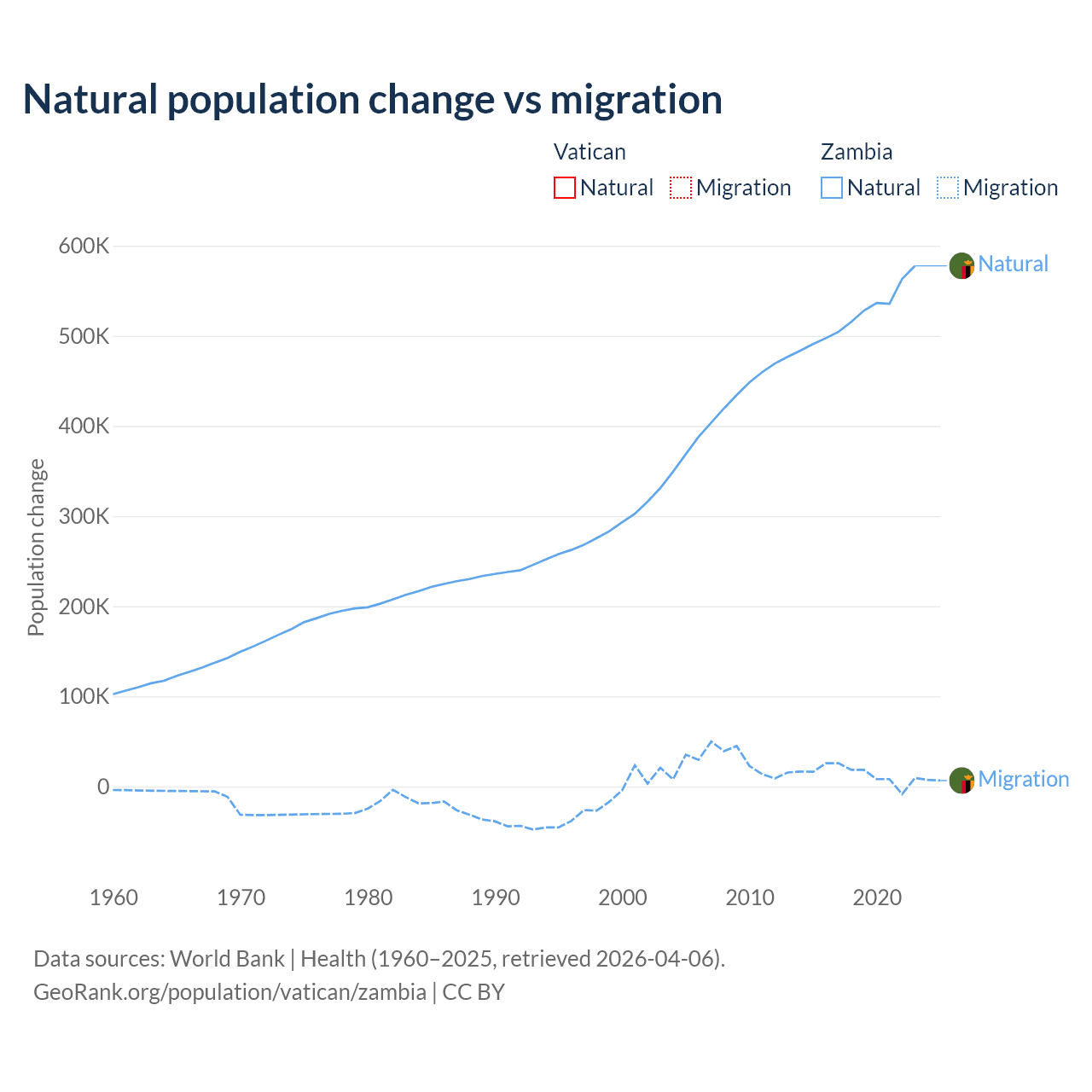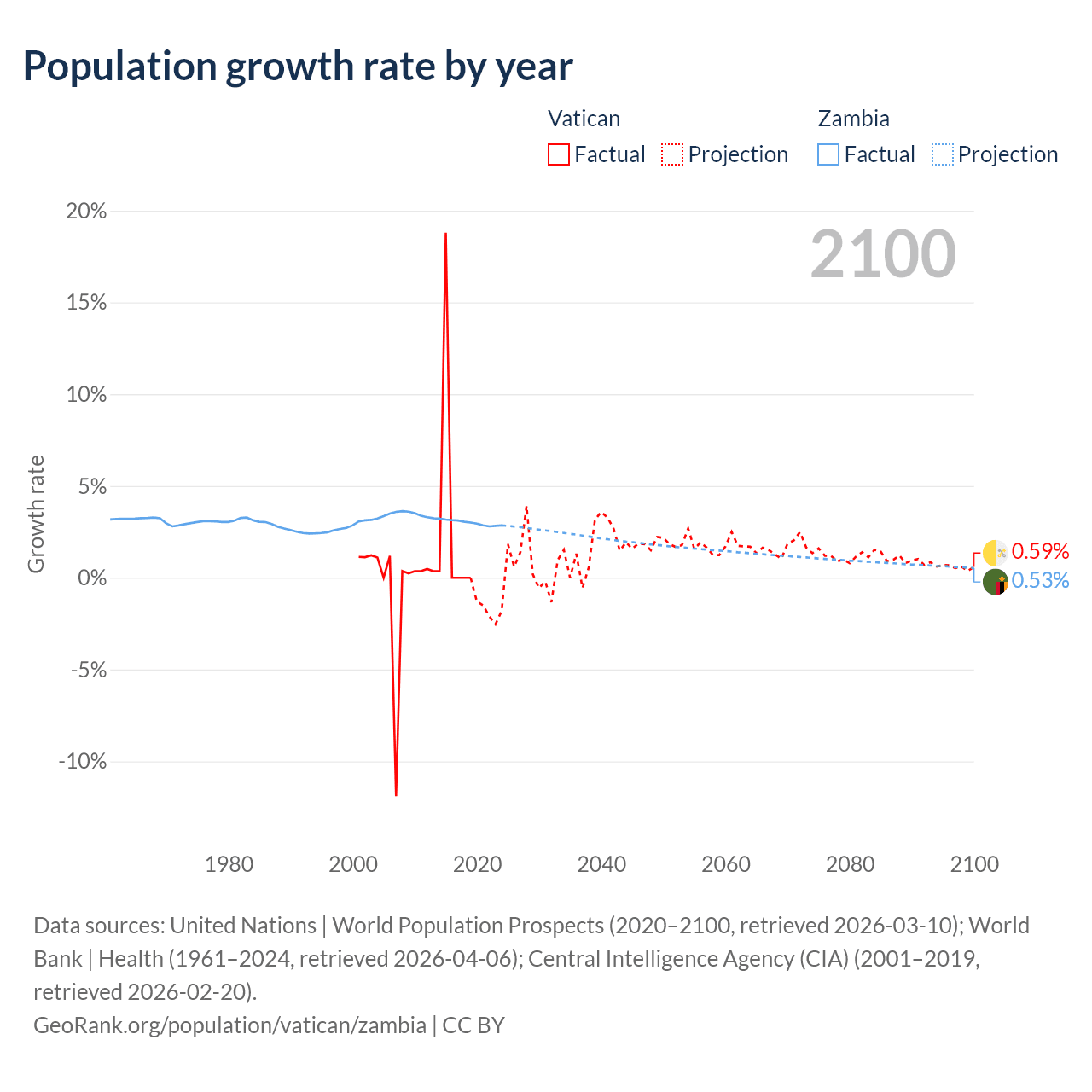 - For the last 10 years, the Vatican has had an average growth rate of +1.9% per year vs +3% in Zambia.