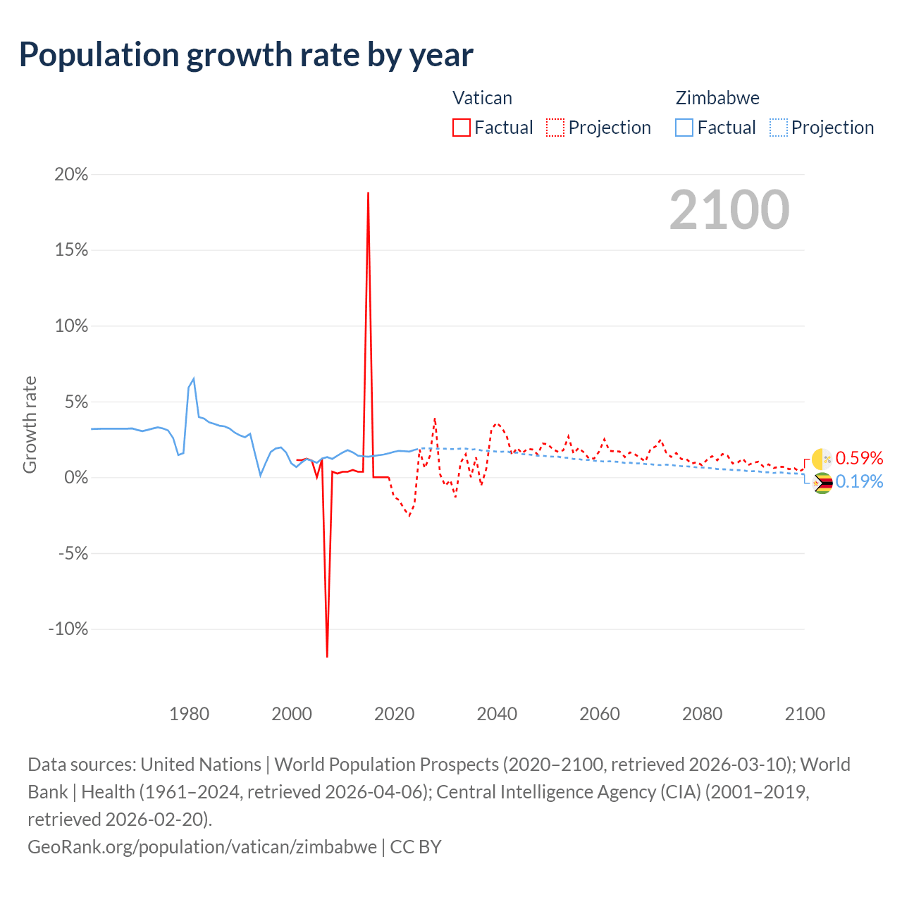 - For the last 10 years, the Vatican has had an average growth rate of +1.9% per year vs +1.57% in Zimbabwe.