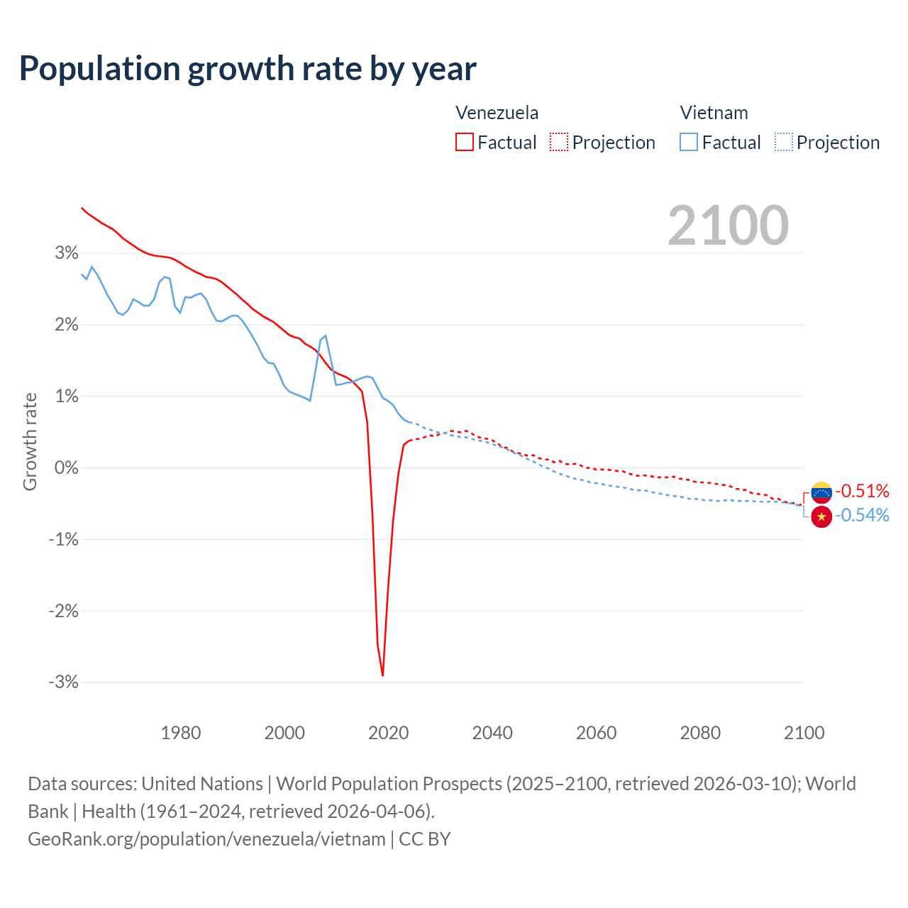Data sources: World Bank | Health (1960–2024, retrieved 2026-04-06); United Nations | World Population Prospects (1960–2026, retrieved 2026-03-10); U.S. Census Bureau (1960–2025, retrieved 2026-02-08); Central Intelligence Agency (CIA) (2000–2019, retrieved 2026-02-20).