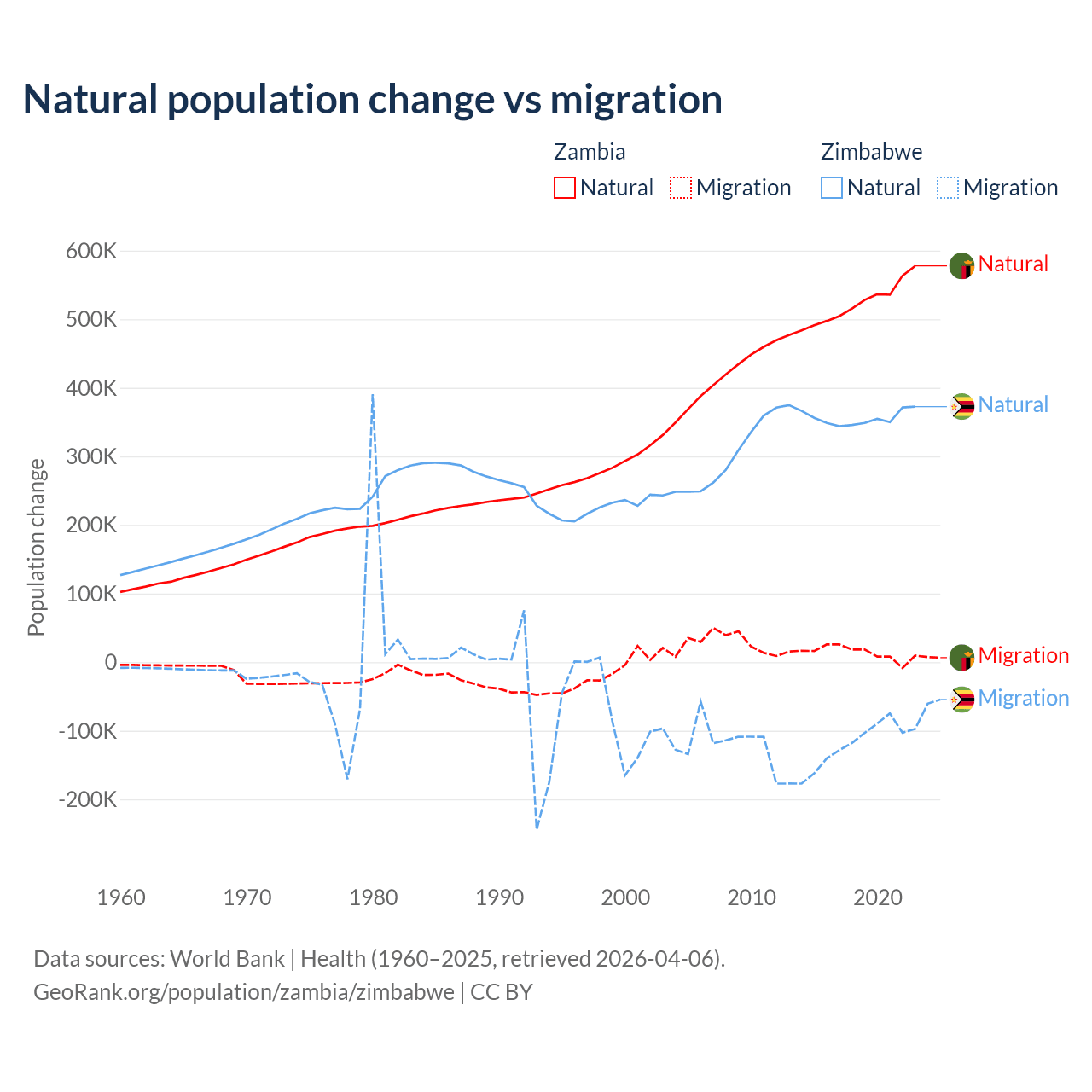 Population differences between Zambia and Zimbabwe
