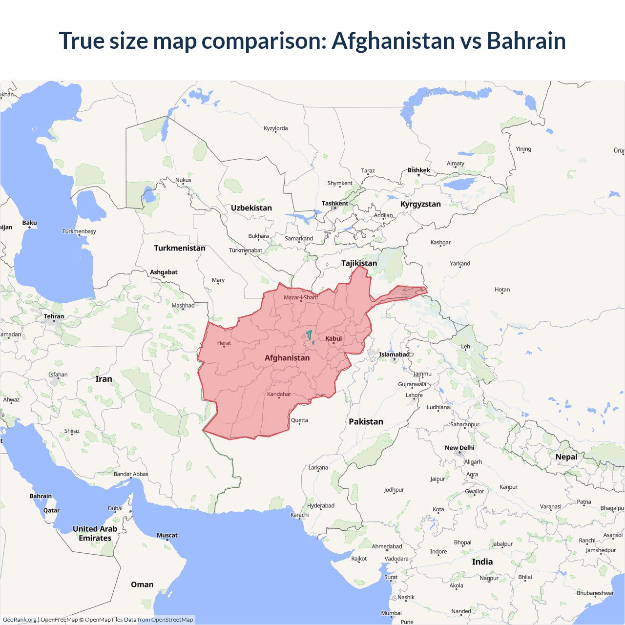 Afghanistan vs Bahrain size on the map