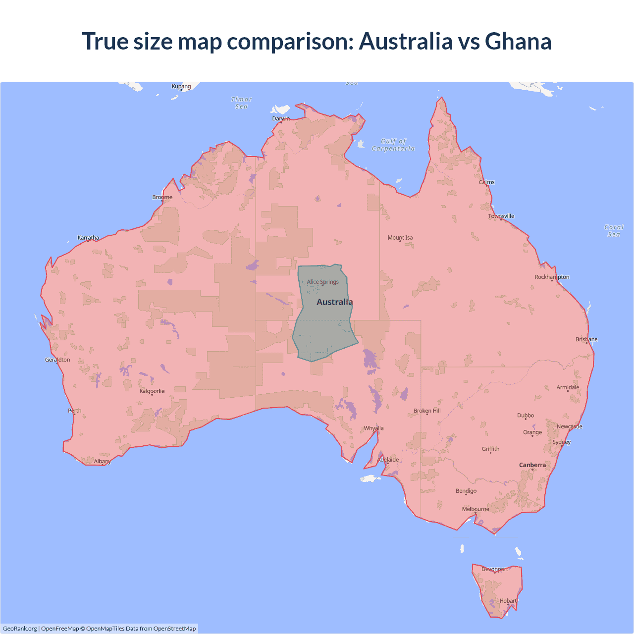 Australia vs Ghana size on the map