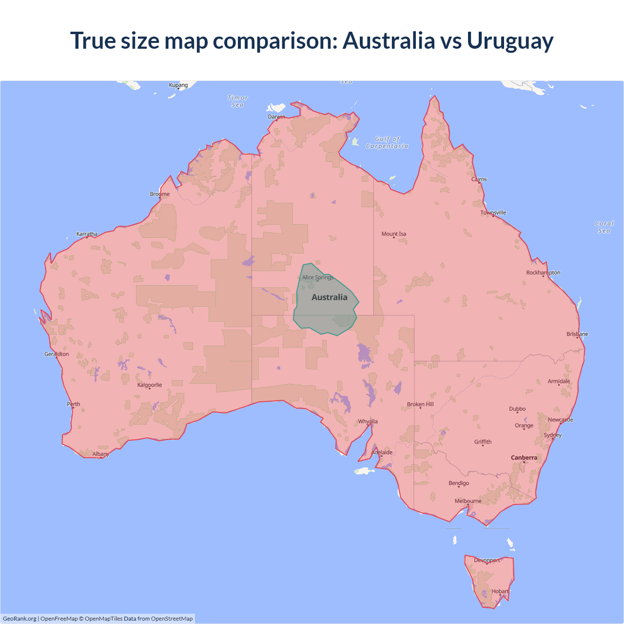 - Australia ranks 6/197 by total surface area vs 89/197 for Uruguay.