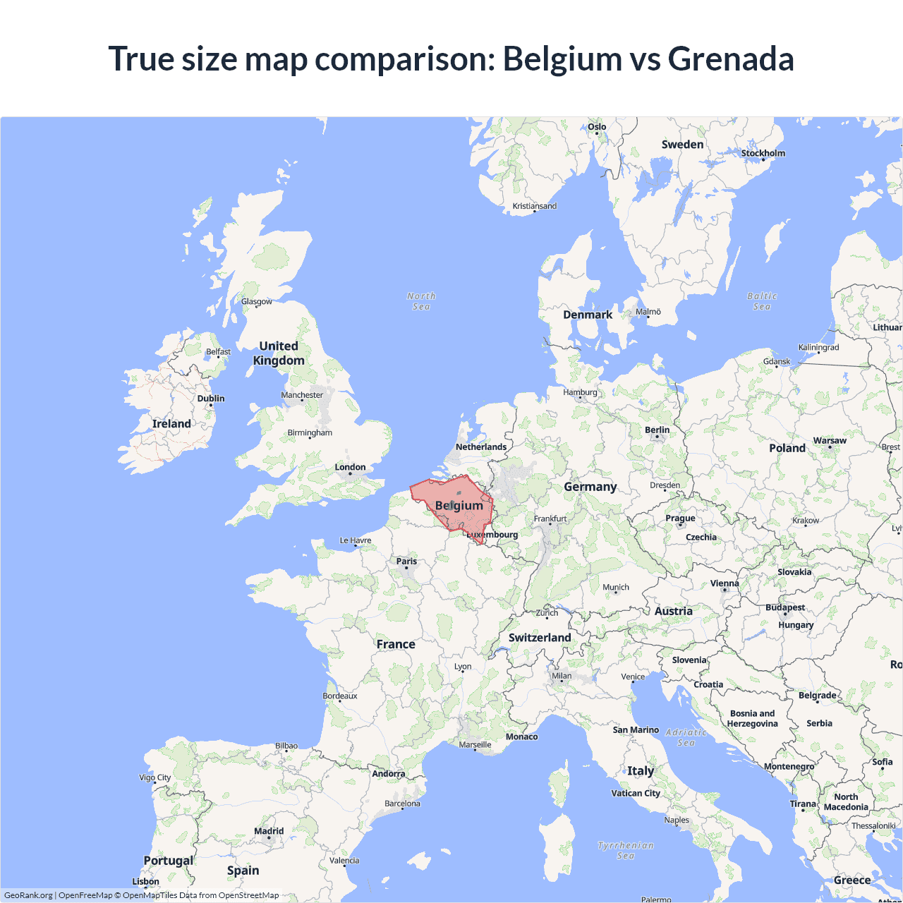 Belgium vs Grenada size on the map