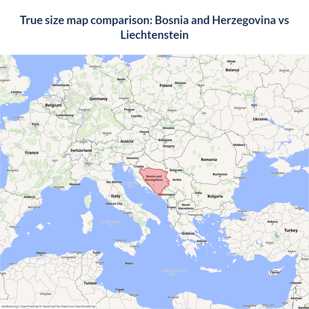 Bosnia and Herzegovina vs Liechtenstein size on the map