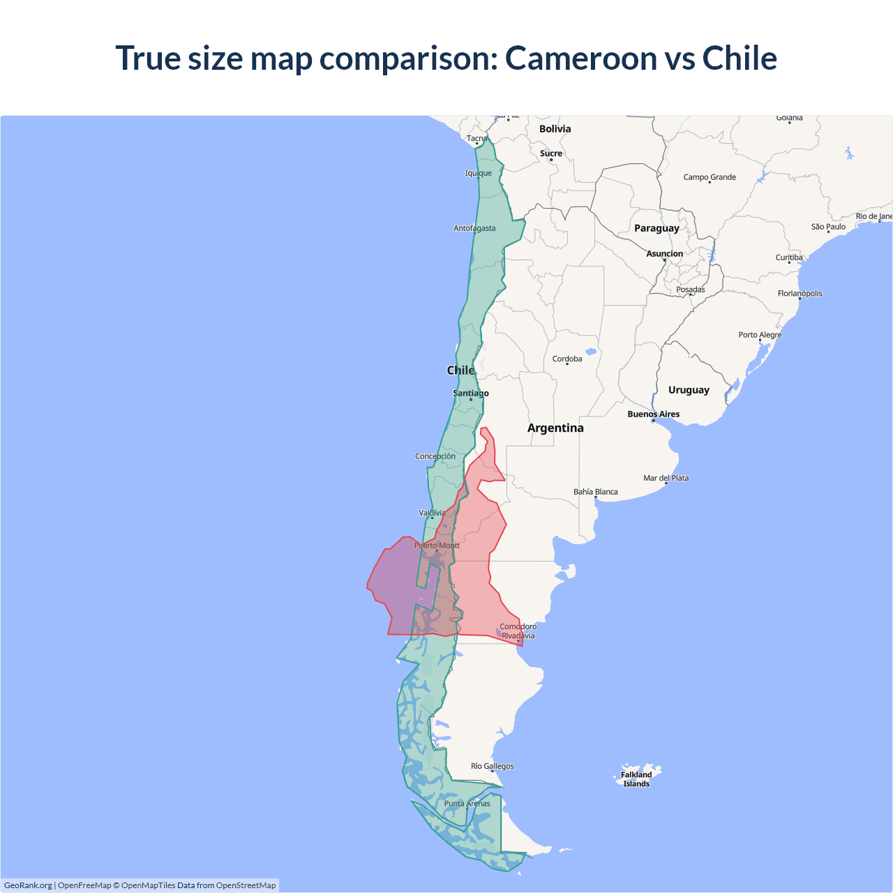 Cameroon vs Chile size on the map