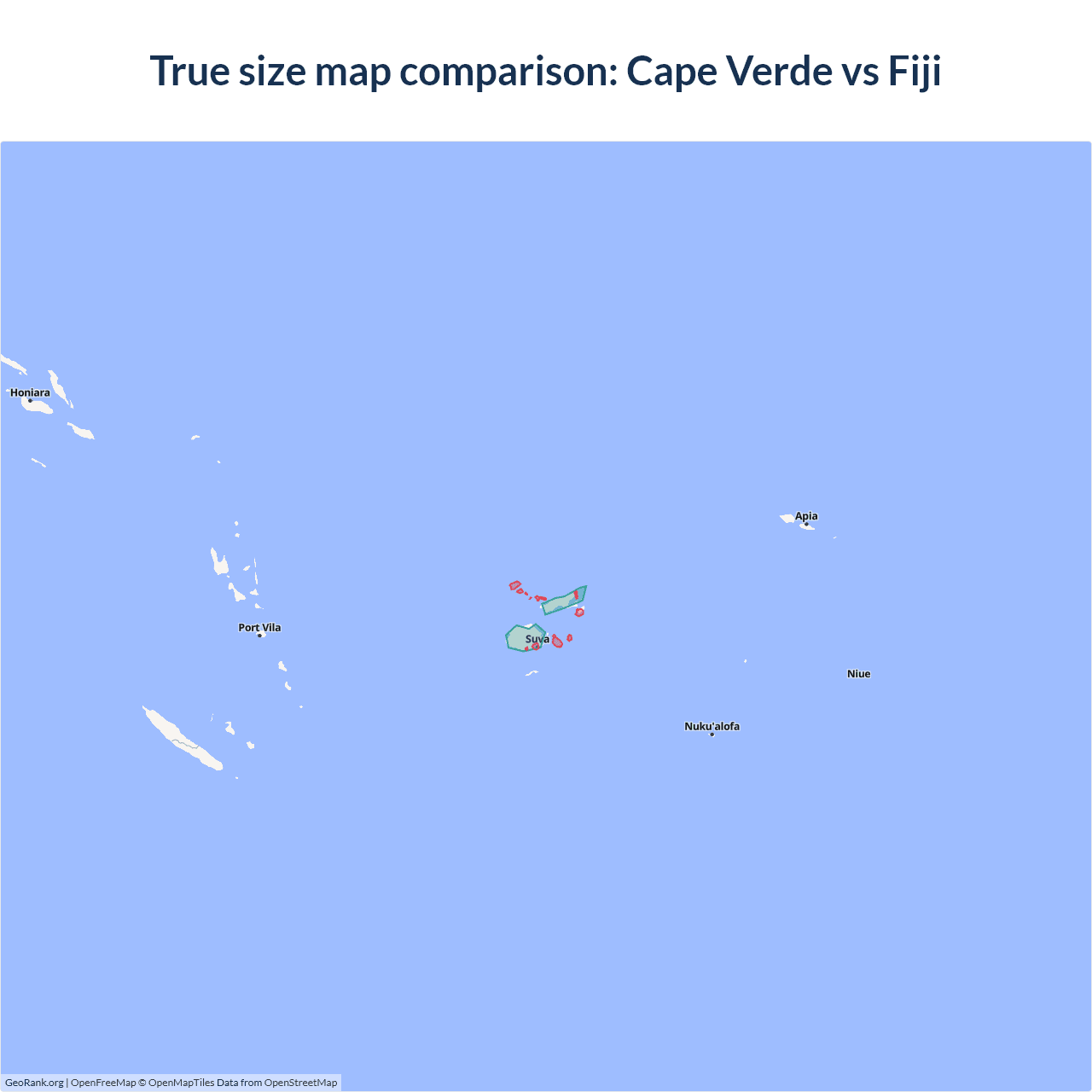 Cape Verde vs Fiji size on the map