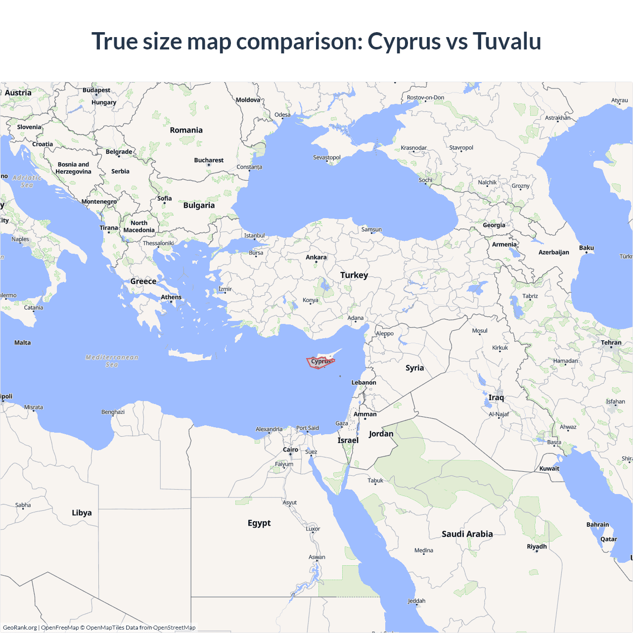 Cyprus vs Tuvalu size on the map