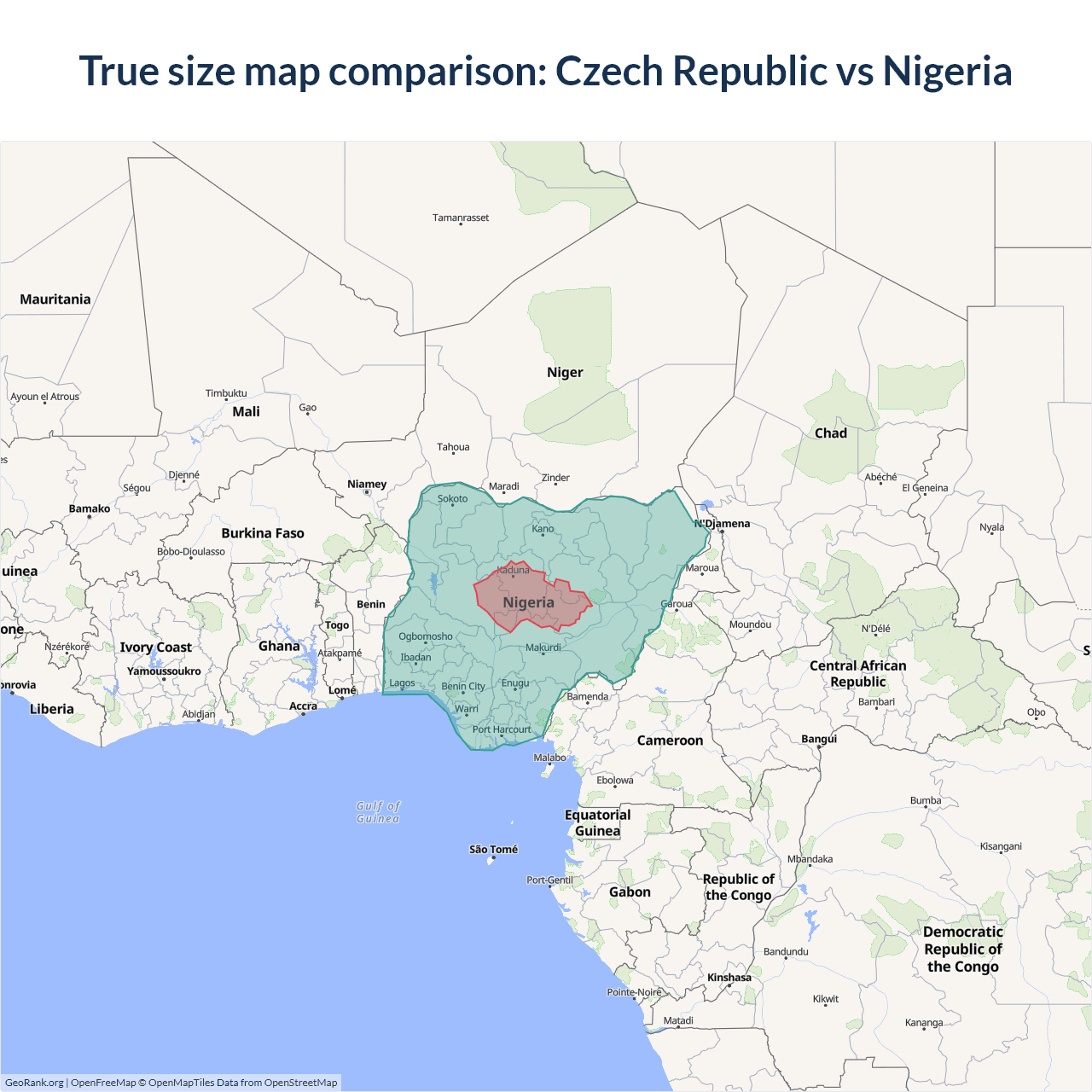 Czech Republic vs Nigeria size on the map