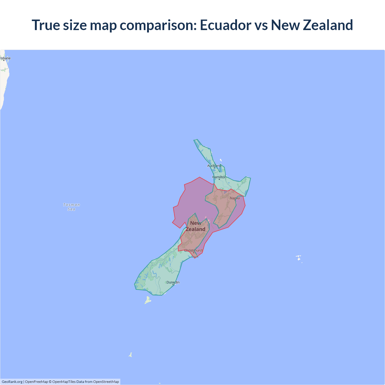 Ecuador vs New Zealand size on the map