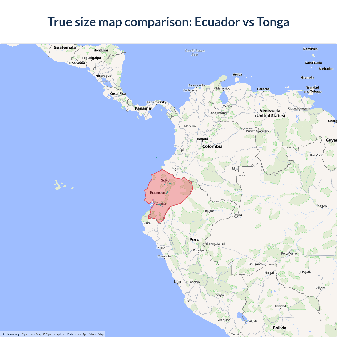Ecuador vs Tonga size on the map