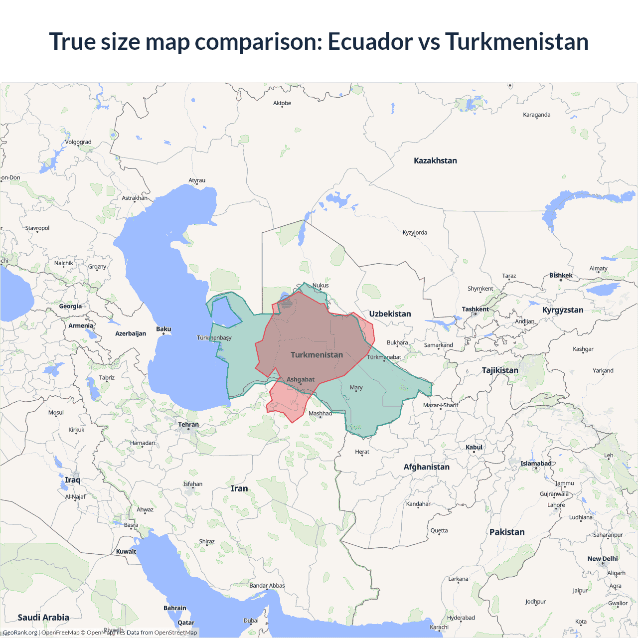 Ecuador vs Turkmenistan size on the map