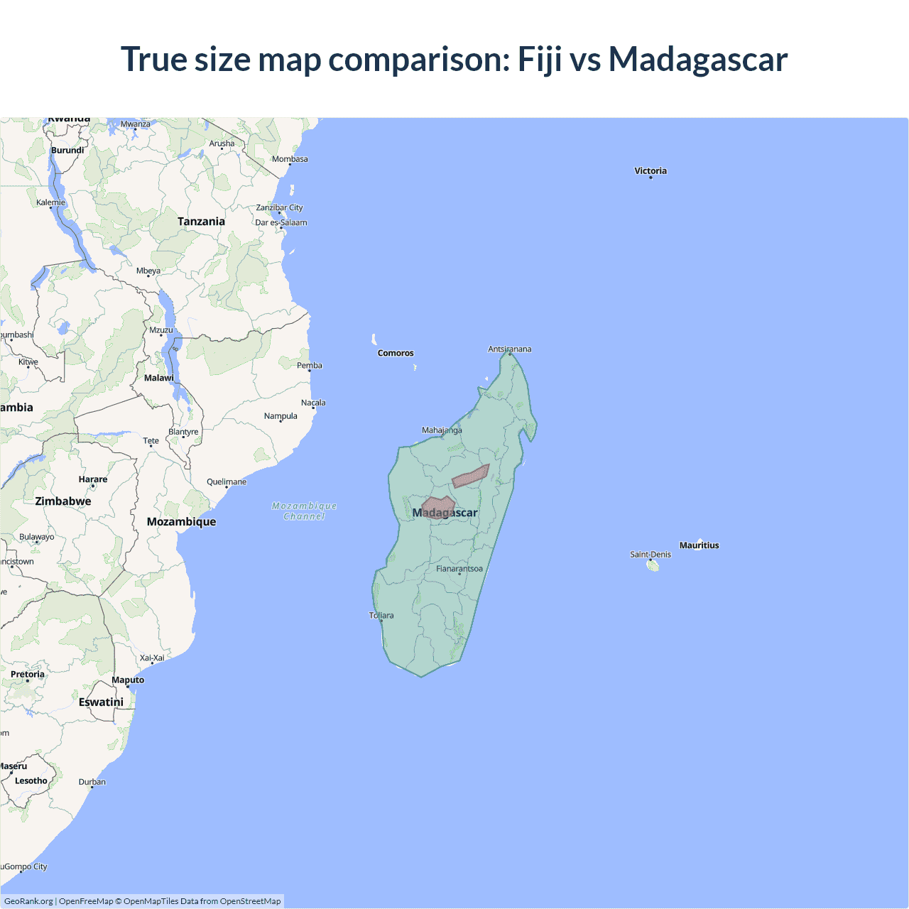 Fiji vs Madagascar size on the map