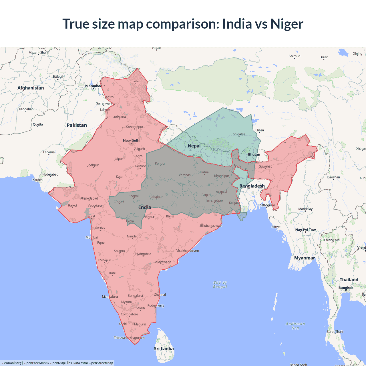 India vs Niger size on the map