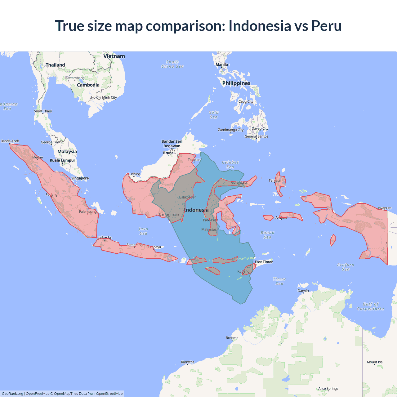 Indonesia vs Peru size on the map